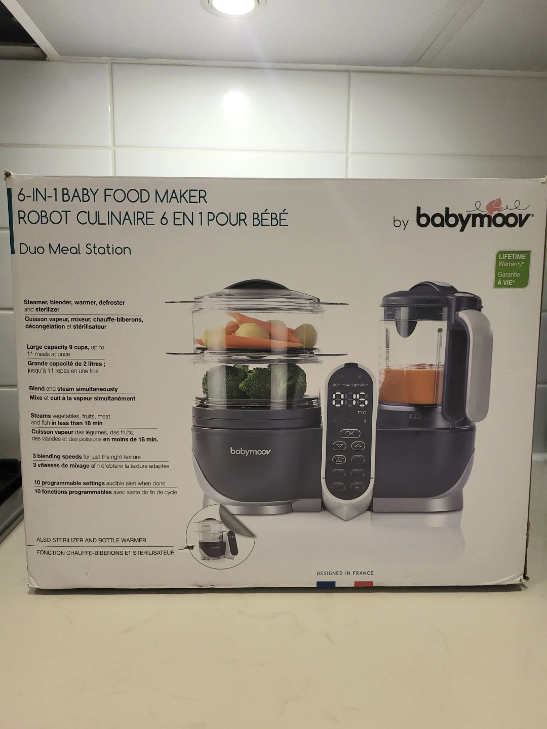 Steams, blends, warms, defrosts, sterilizes and warms bottles.