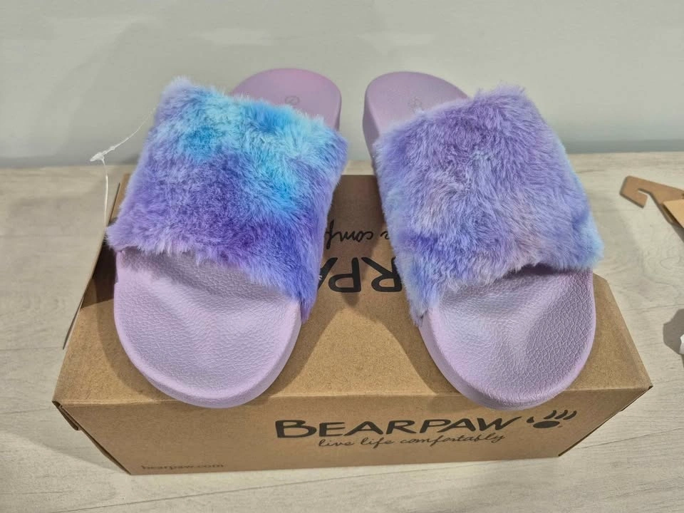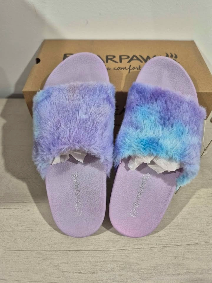 Brand new Bearpaw Lucinda slide sandals in Women's Size 7. Soft, cozy faux fur slides that are stylish and comfortable. Perfect for relaxing at home or quick trips outside. Features: Plush faux fur upper, easy slip-on slide style, soft textile lining, cushioned PVC footbed for comfort, molded athletic-style outsole, durable sole for indoor & outdoor use, lightweight and comfortable. From a smoke-free & pet-free home. Pick-up in North Delta.