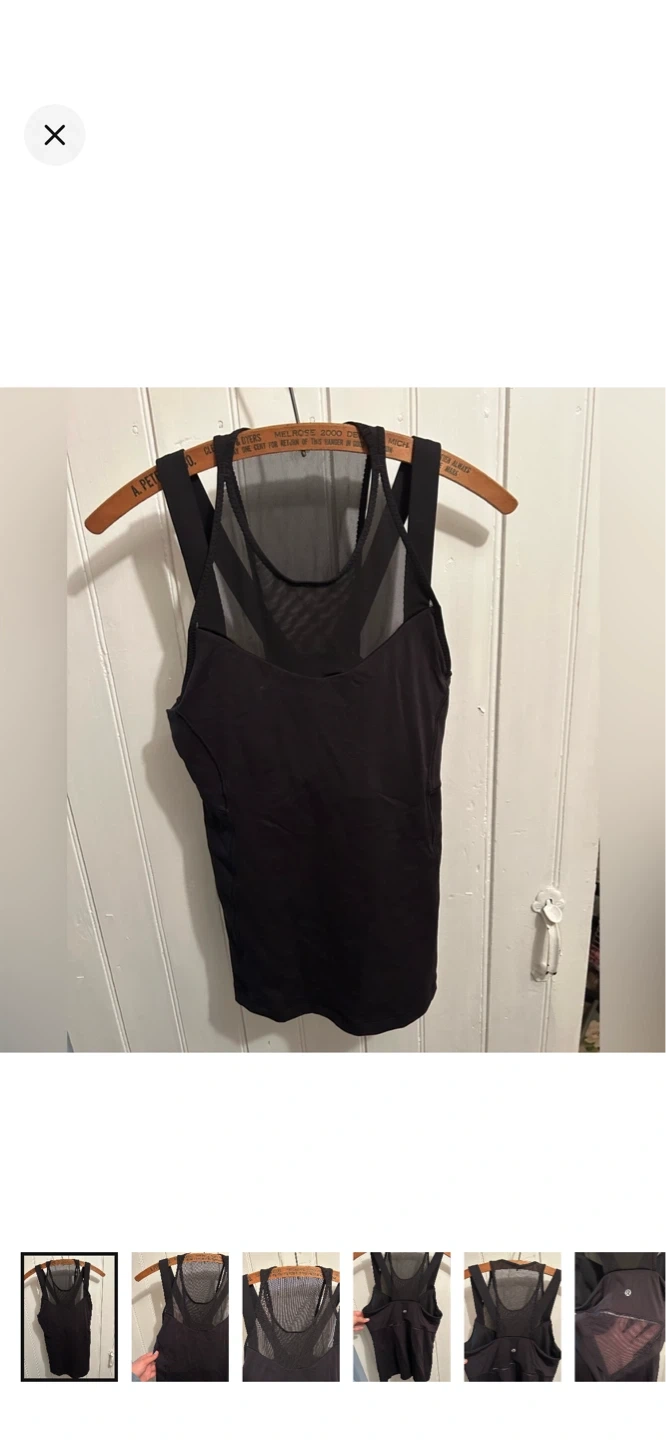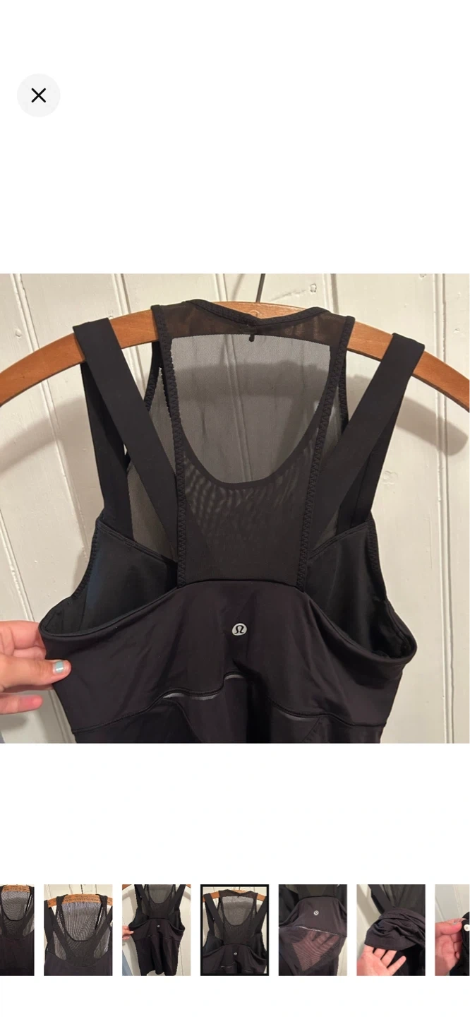 Lululemon brand. High neck mesh strapy tank top with built in bra. Black in colour. Size 8. Brand new condition $15