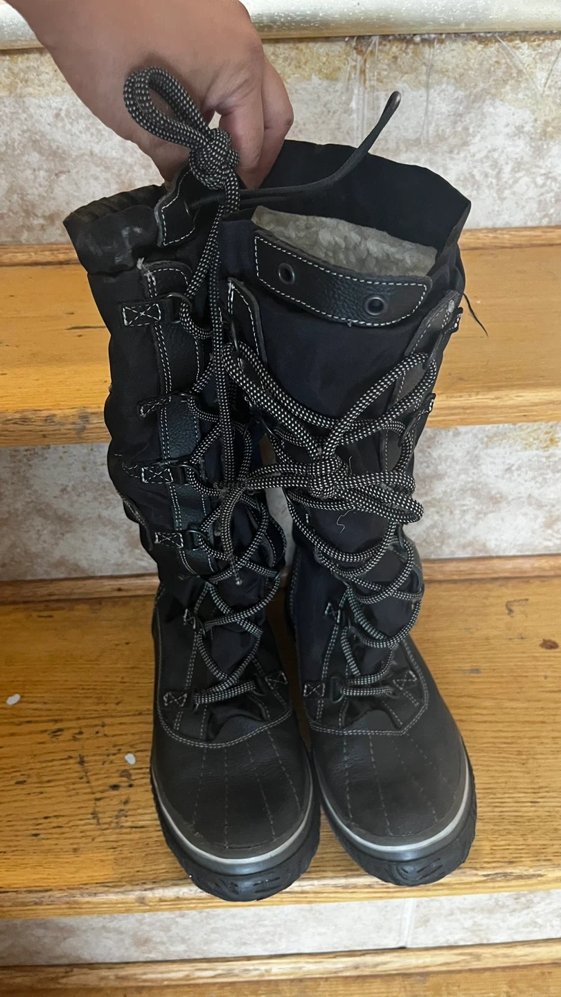 Selling a pair of Pajar winter boots in black. They're in great shape and ready to keep your feet warm this winter! Boots are missing the drawstrings at the top, but not needed at all as the boot stays up the calves even when not laced. Waterproof.