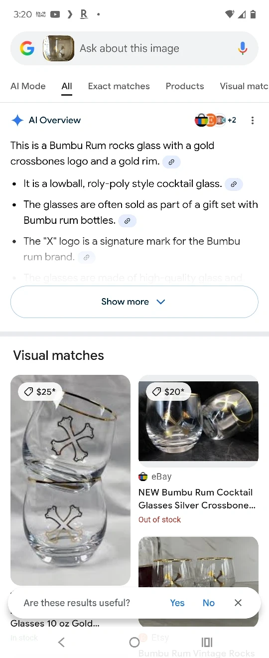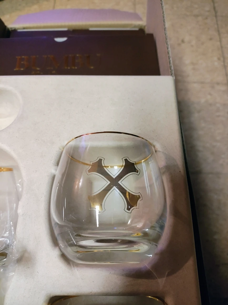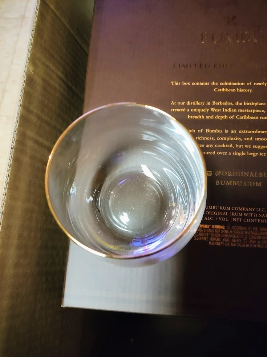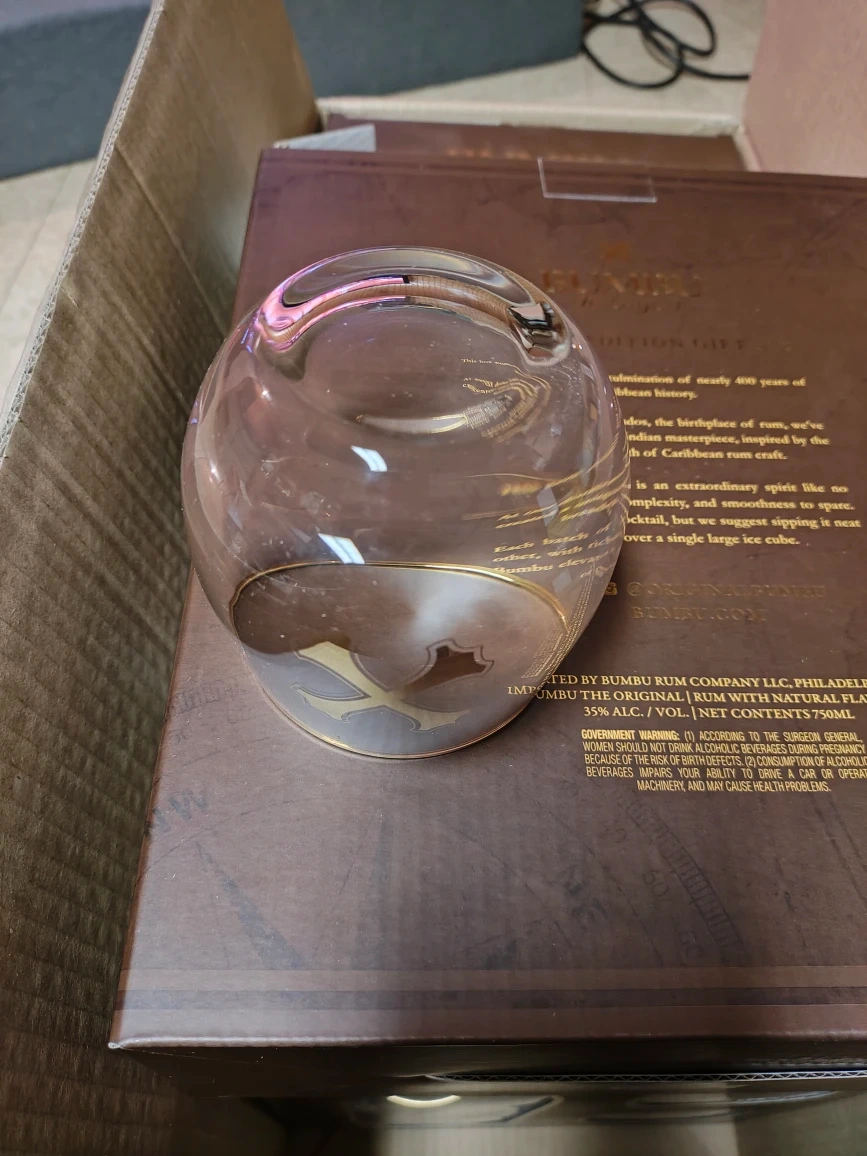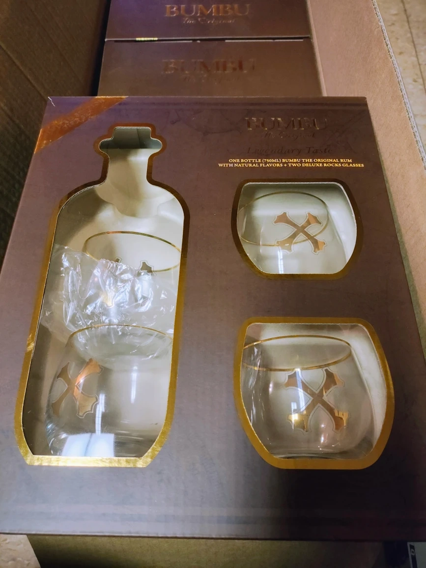 24 Bumbu Rum rocks glass with a gold crossbones logo and a gold rim. ( 2 of these glasses sell on eBay for $20). I'm selling all 24 glasses for $30.