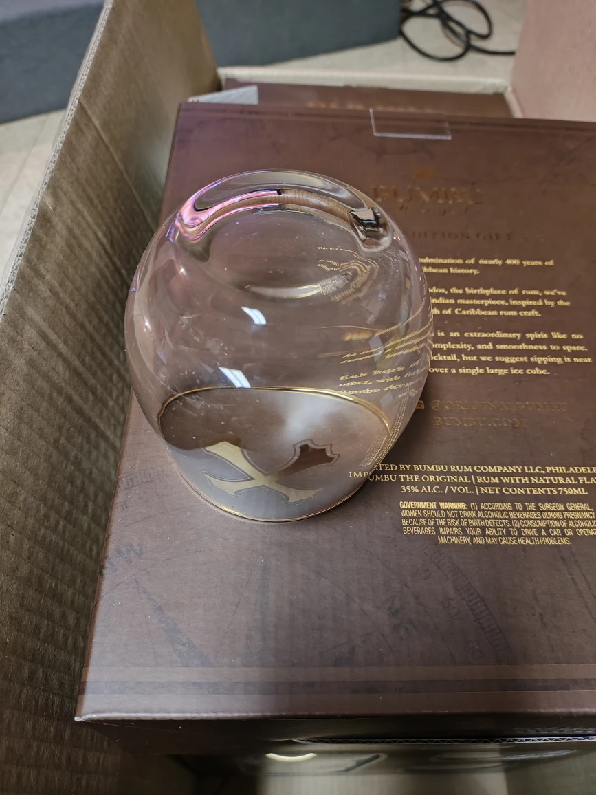 24 Bumbu Rum rocks glass with a gold crossbones logo and a gold rim. ( 2 of these glasses sell on eBay for $20). I'm selling all 24 glasses for $30.