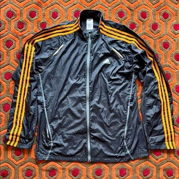 🏆 Adidas Black and Orange Windbreaker Men's Large