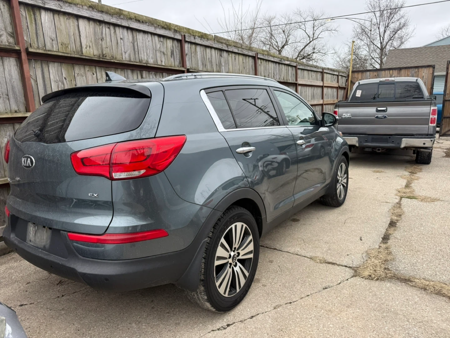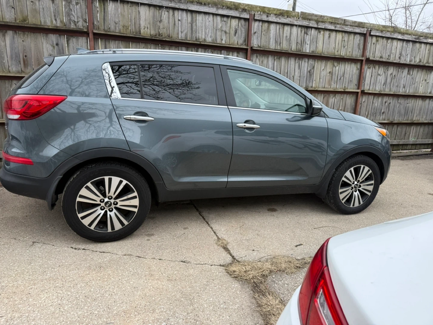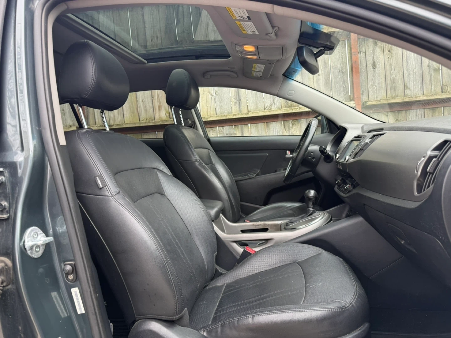 This is a gray Kia Sportage 190,000 original miles SUV with black leather interior. It features a sunroof and has seating for five people. The vehicle is a reliable choice for daily commuting or family trips.