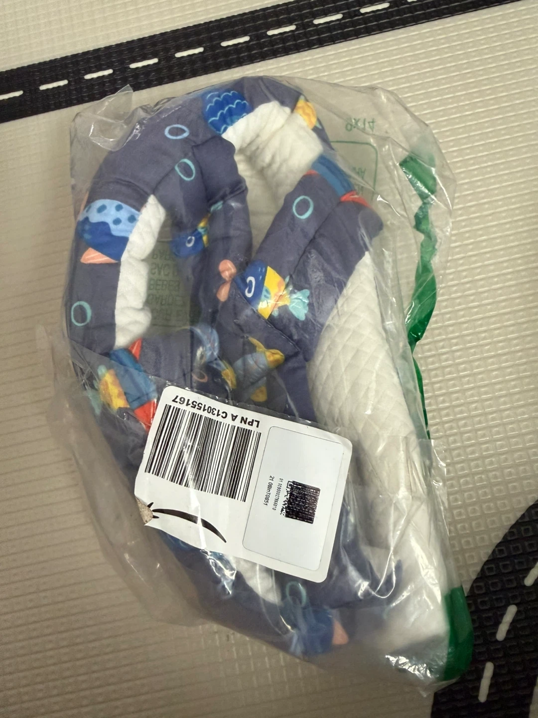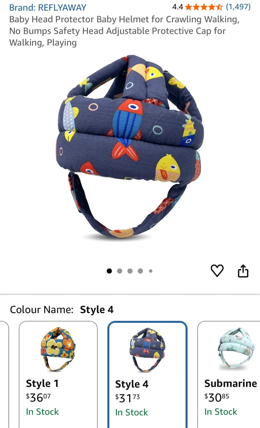 This baby head protector helmet has a cute fish pattern. It's designed for crawling and walking babies to offer protection.