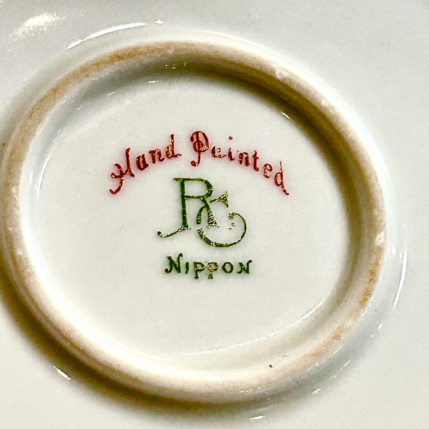 The underside bears the backstamp “Hand Painted” over an interlaced “RC” with “Nippon” below. This is a documented RC Nippon mark, recorded in use from 1911–1921, and commonly seen on more utilitarian forms (serving and table items), as opposed to strictly ornamental pieces. The letters RC are commonly cited as standing for “Royal China” or “Royal Crockery.”