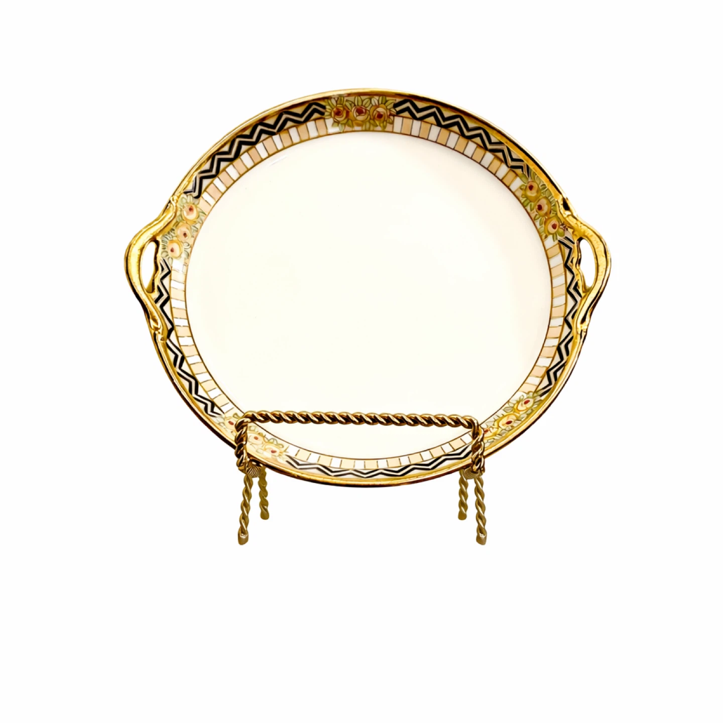Antique RC Nippon Hand-Painted Gilt Handled Dish