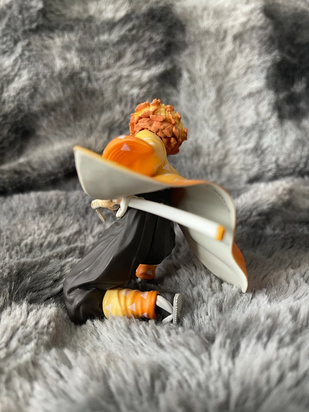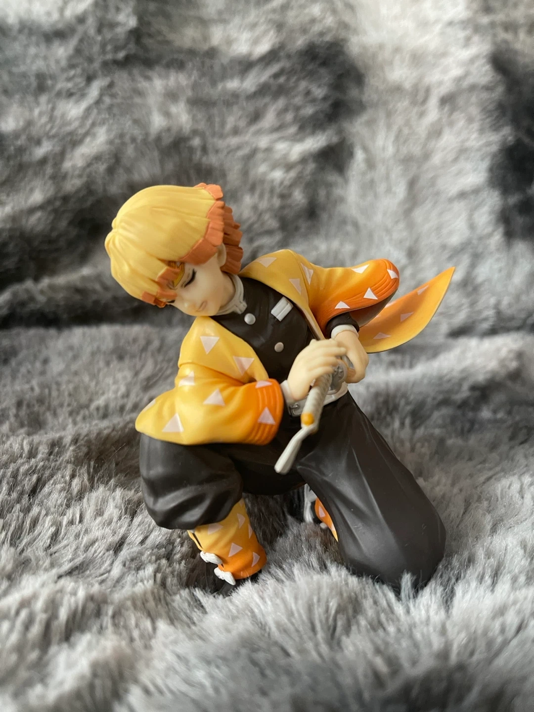 This is a Demon Slayer figure of Zenitsu Agatsuma. It's made of plastic. This collectible is great for fans of the anime series!