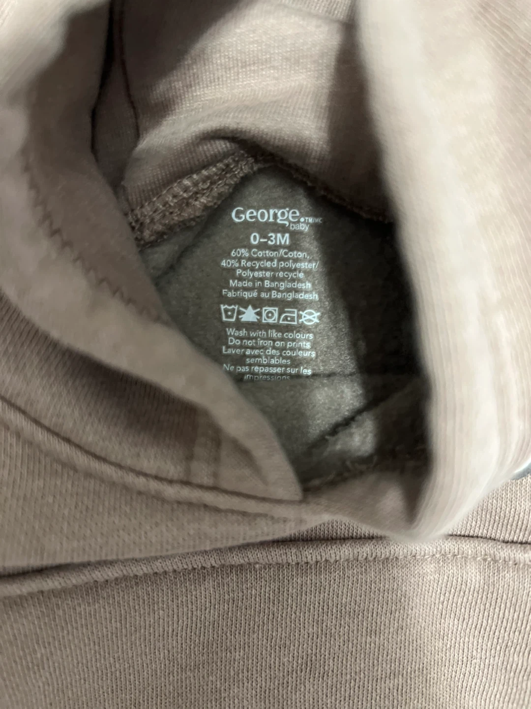 Super cute George Baby outfit in size 0-3 months! The set includes a hoodie and matching pants. It's made of 60% cotton and 40% recycled polyester, so it's soft and comfy for your little one