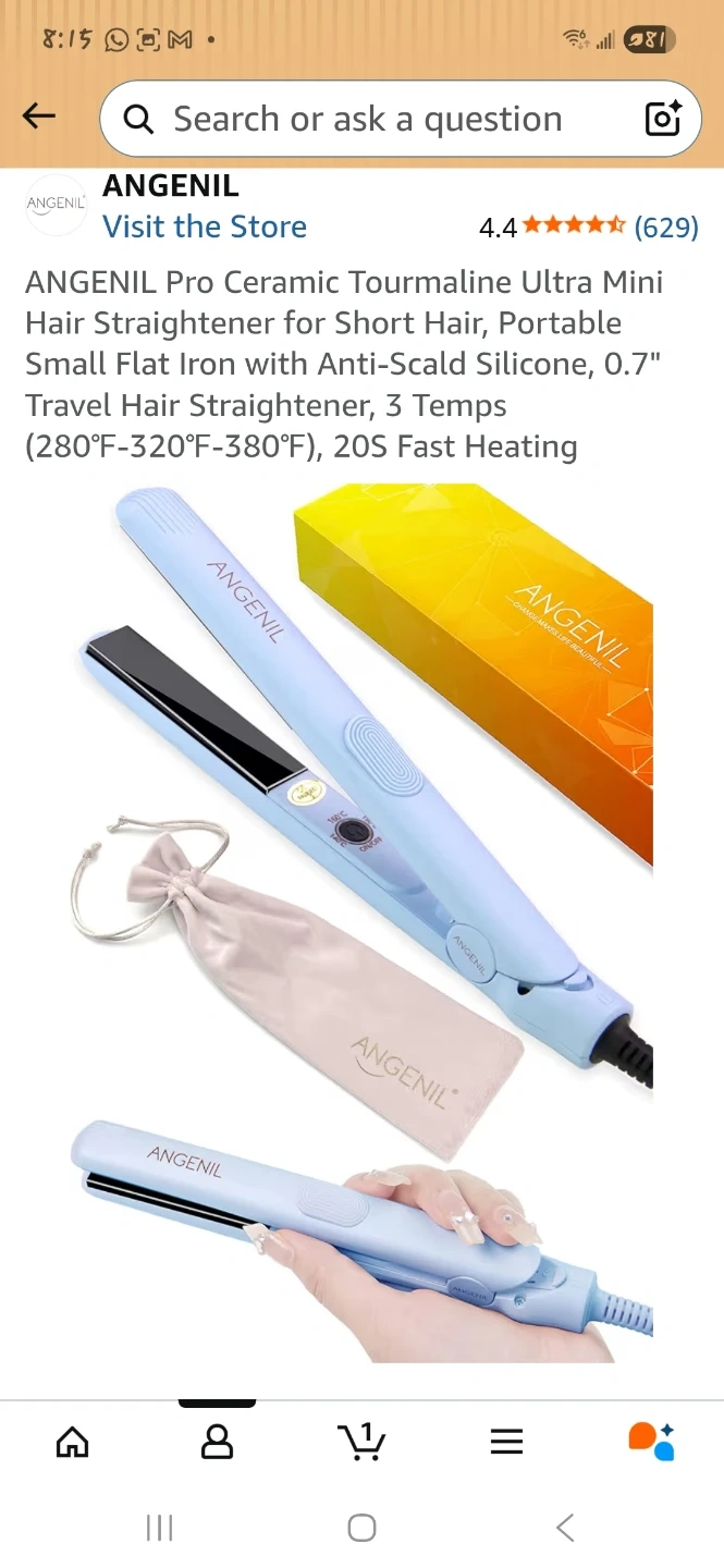 This is an ultra-mini hair straightener, perfect for travel or quick touch-ups. It features ceramic tourmaline plates for smooth styling and offers multiple temperature settings up to 380°F. It's a compact styling tool for naturally straight hair.