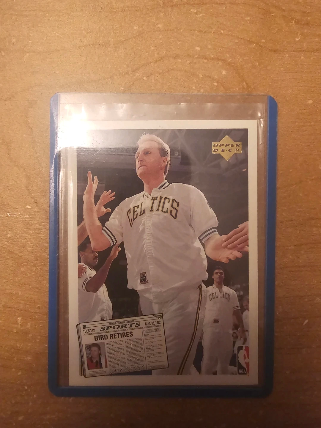 Collection of two Upper Deck NBA trading cards featuring Magic Johnson and Larry Bird. Cards are from 1992, commemorating their retirements. These are sports collectibles for NBA fans.