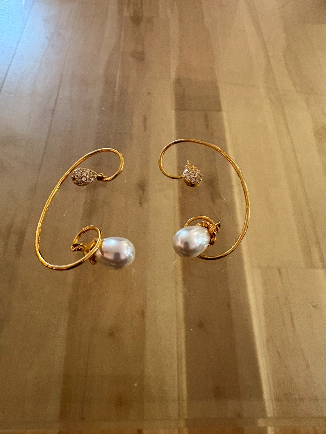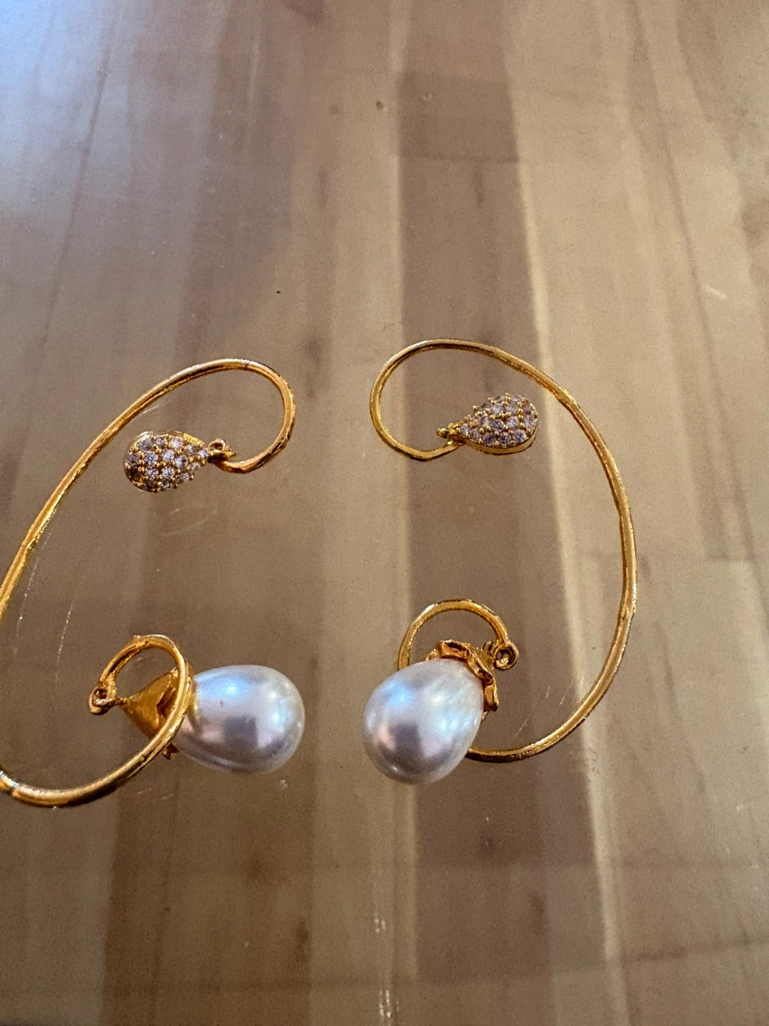 Gold-tone Pearl and Crystal Ear Cuffs