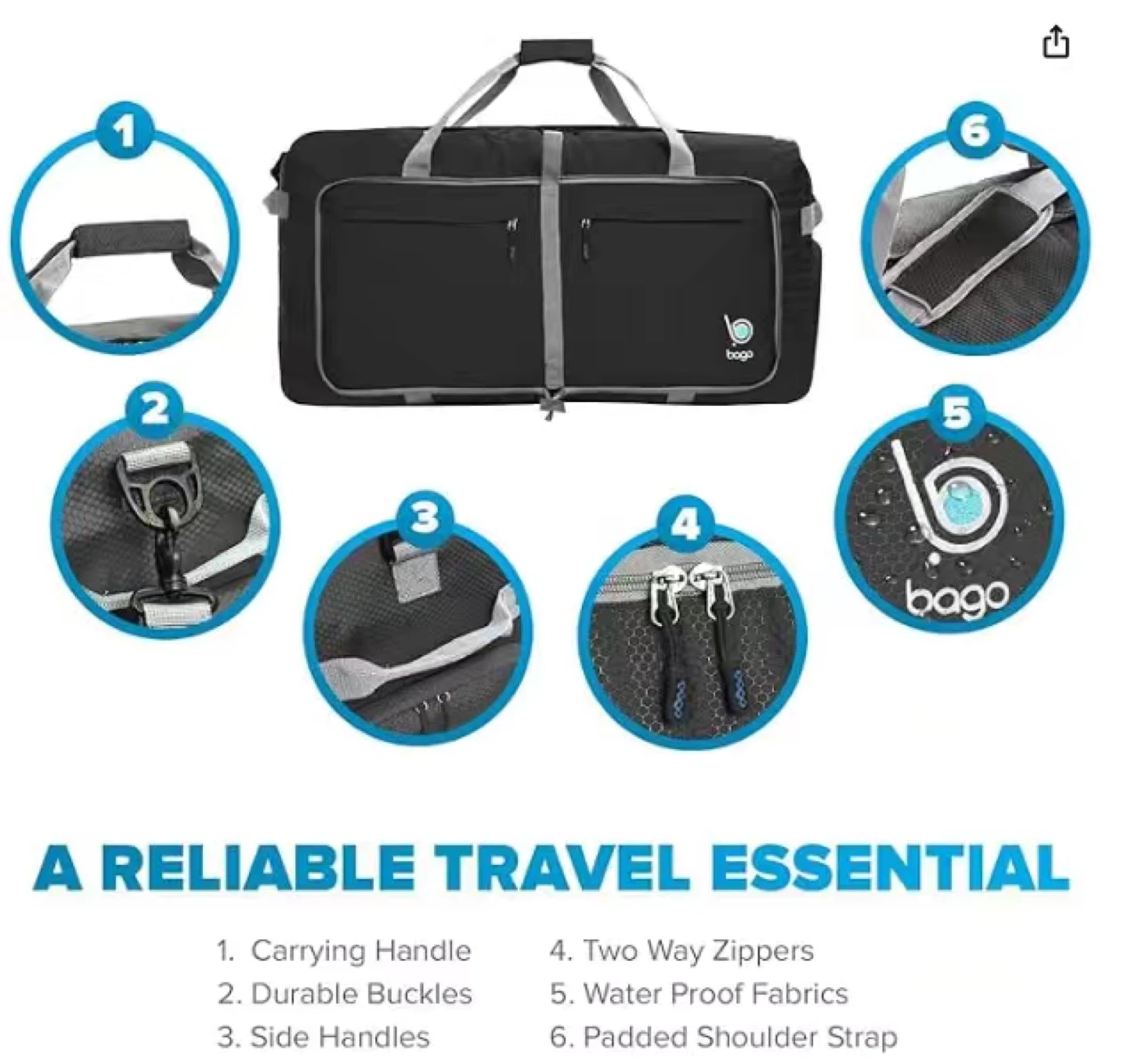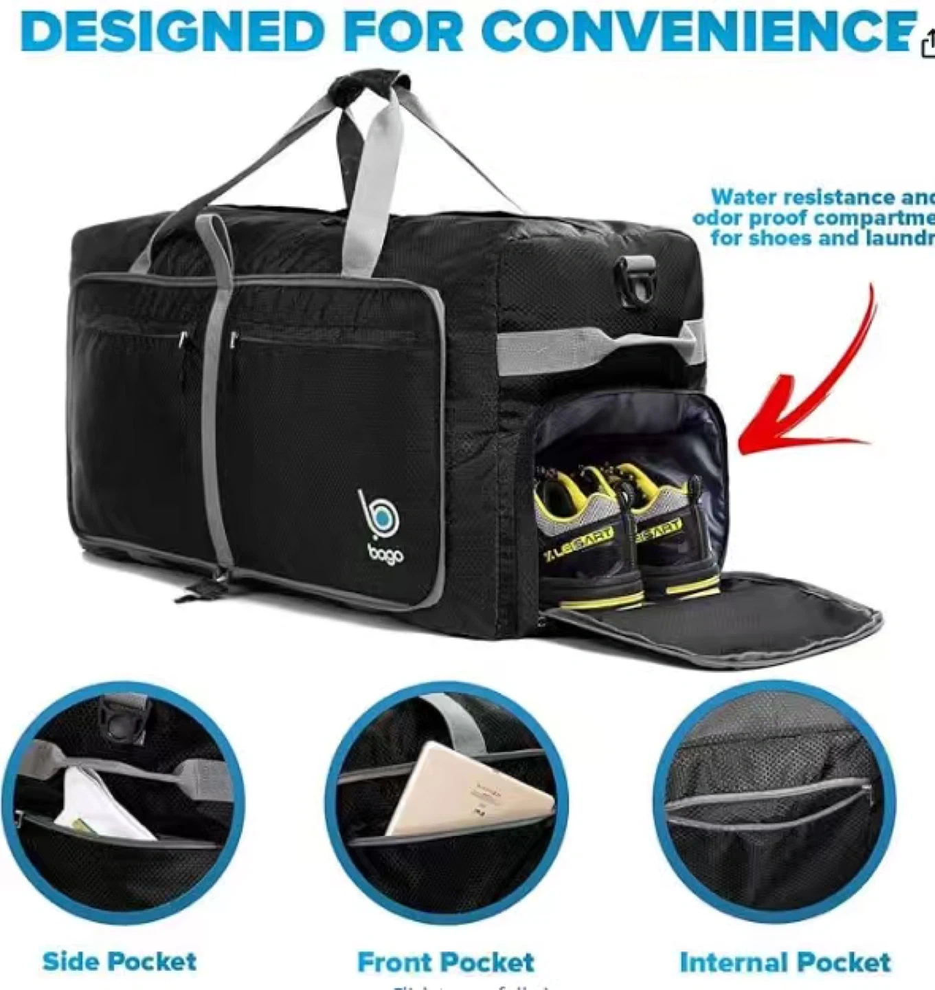 Bago Large Foldable Duffel Bags for Traveling - 100L Packable Duffle Bag for Travel with Shoe Compartment - Water Repellant, Heavy Duty, Lightweight Folding & Collapsible