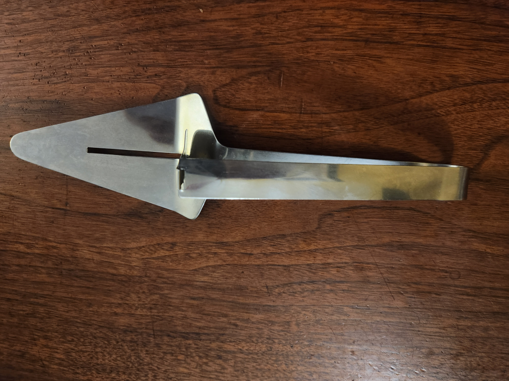 This cake/pie lifter had a feature where you can press the top lever to push the desserts the lifter and onto the plate. Very useful for folks who may have only one hand that is fully functional.