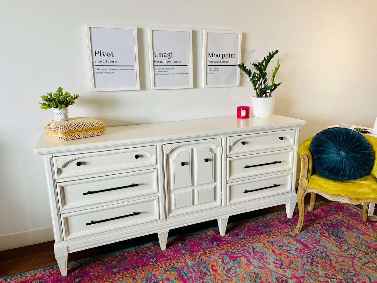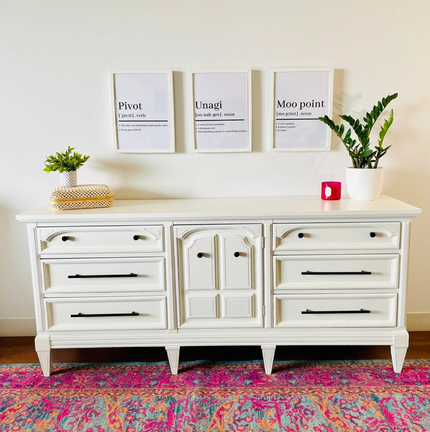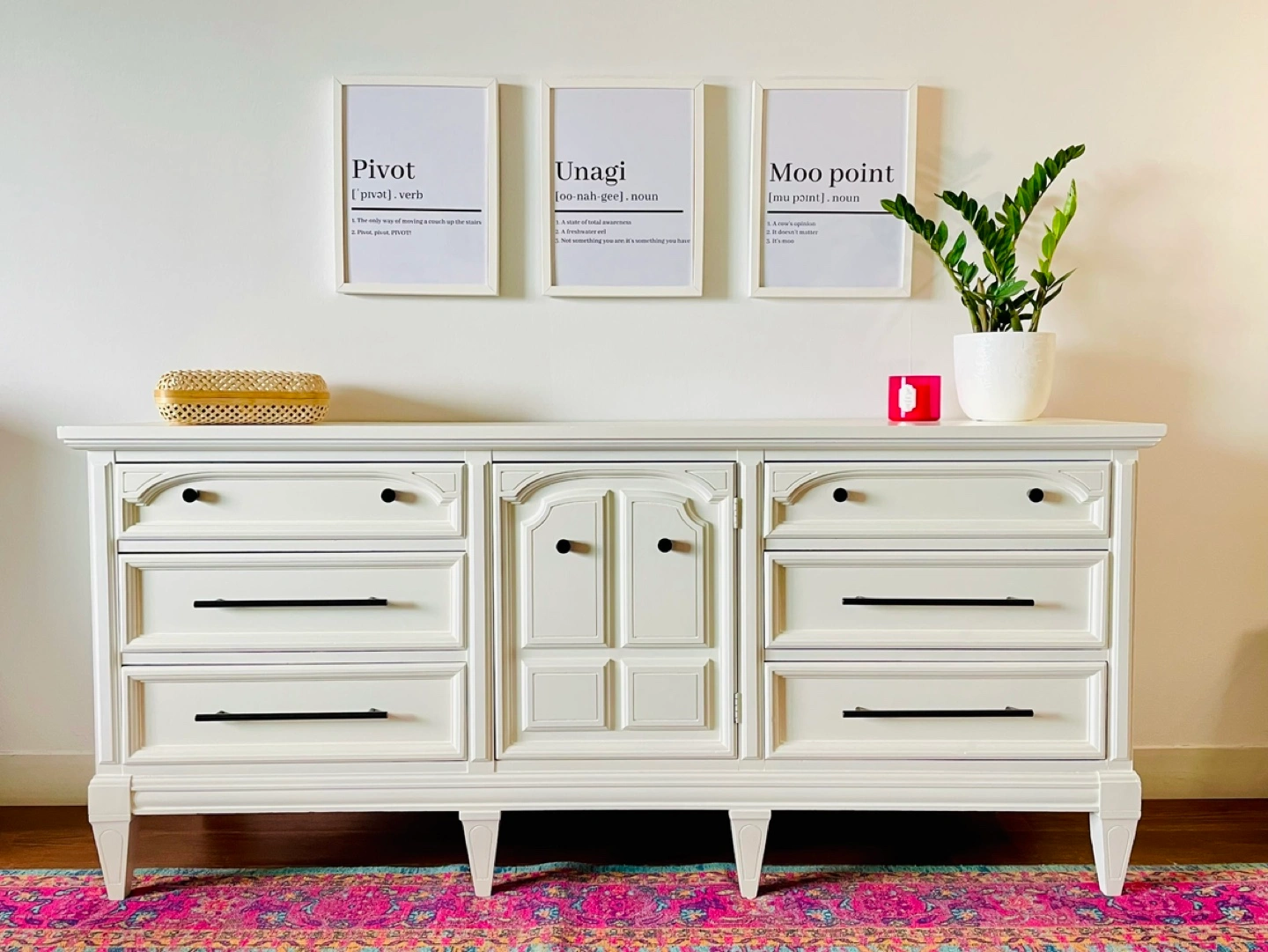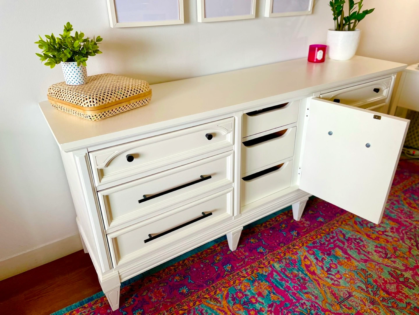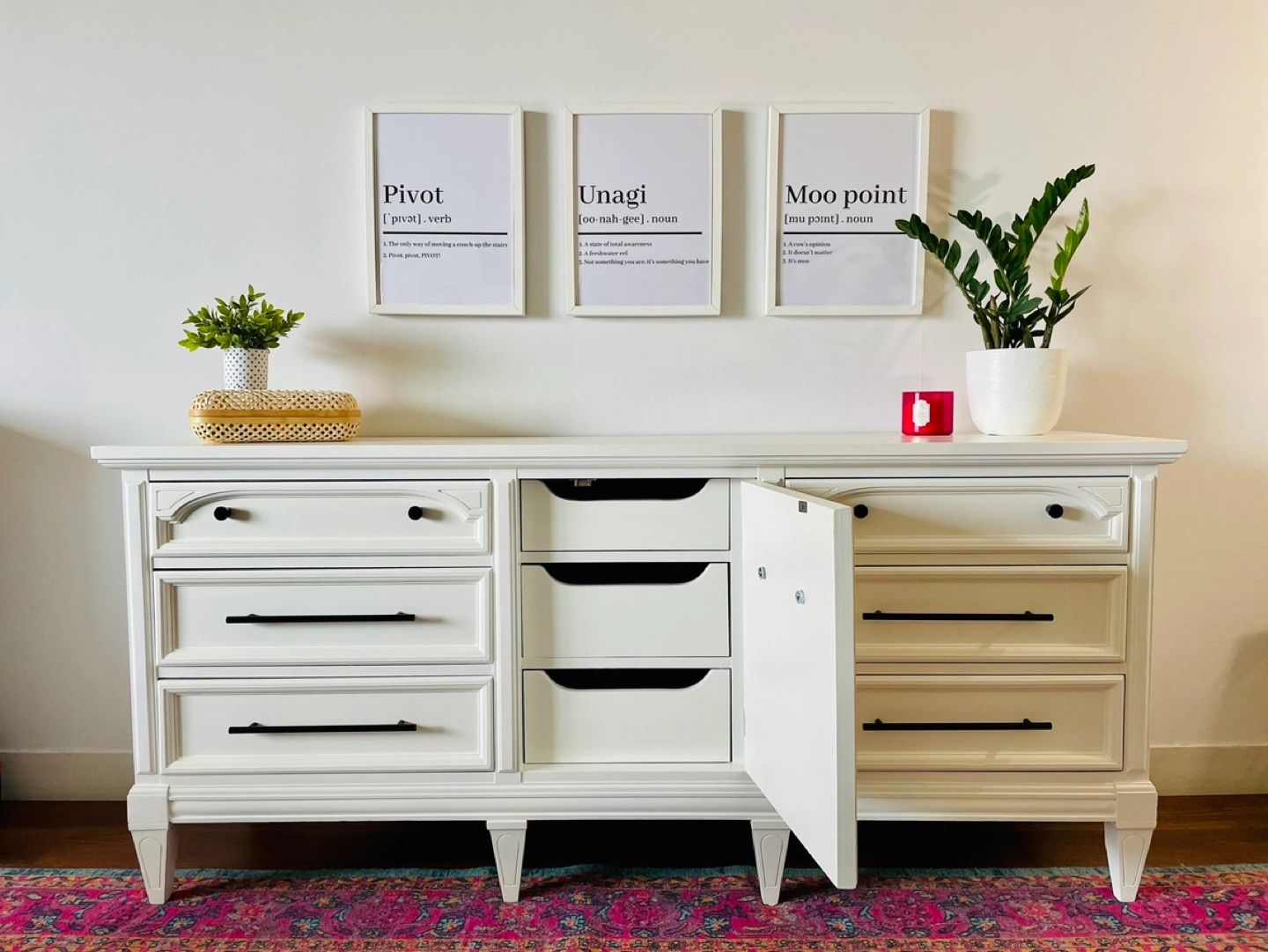 Use it as a dresser, a dinning room buffet, or you could even turn it into a baby change table. Its a beautiful piece that could be used in just about any room.