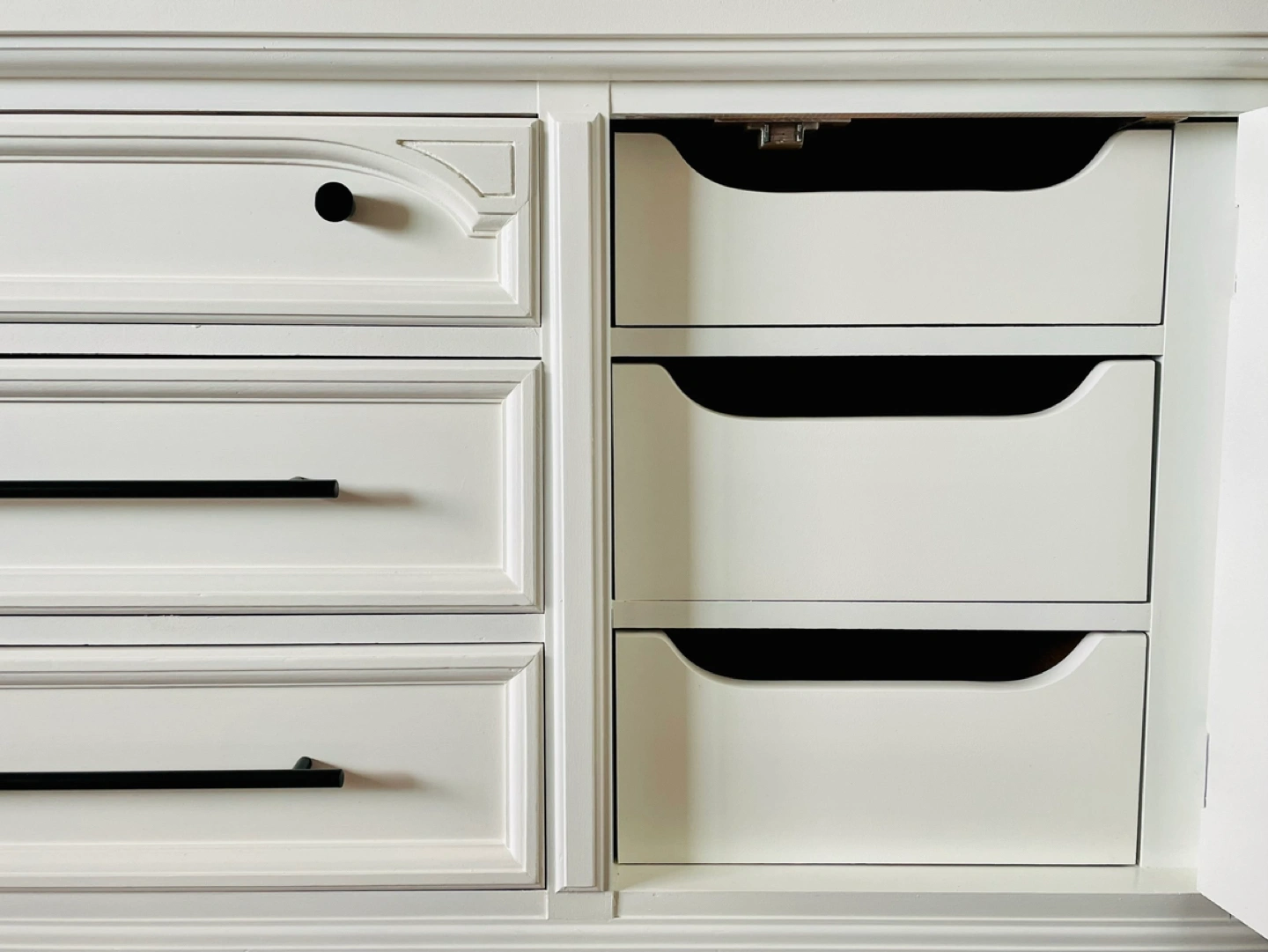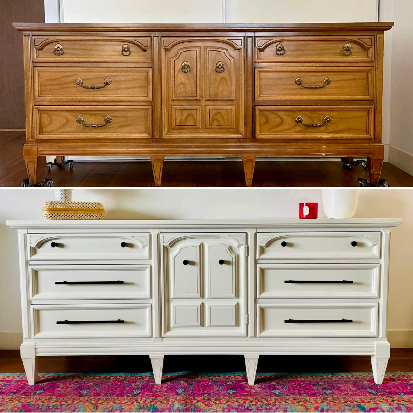 This is a beautiful newly refurbished piece. It’s been fully cleaned, sanded, holes filled, primed, painted, new hardware added, and top coated for protection.