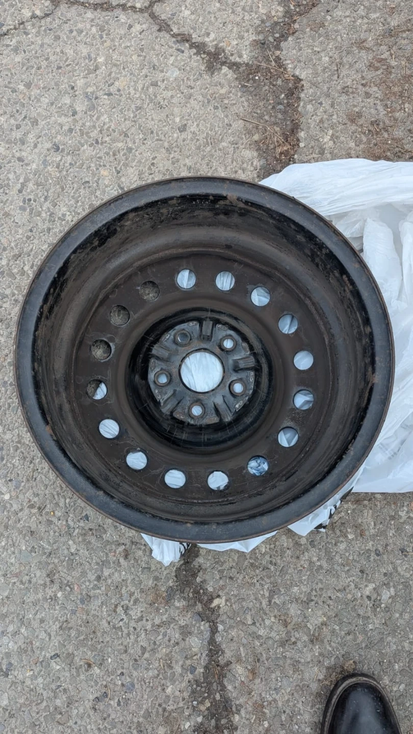 Four used steel wheel rim, black in colour. It's a standard size wheel, likely for a car or light truck. Shows some signs of use and rust but is structurally sound. Tire size 205/60R16. Price is $30 each