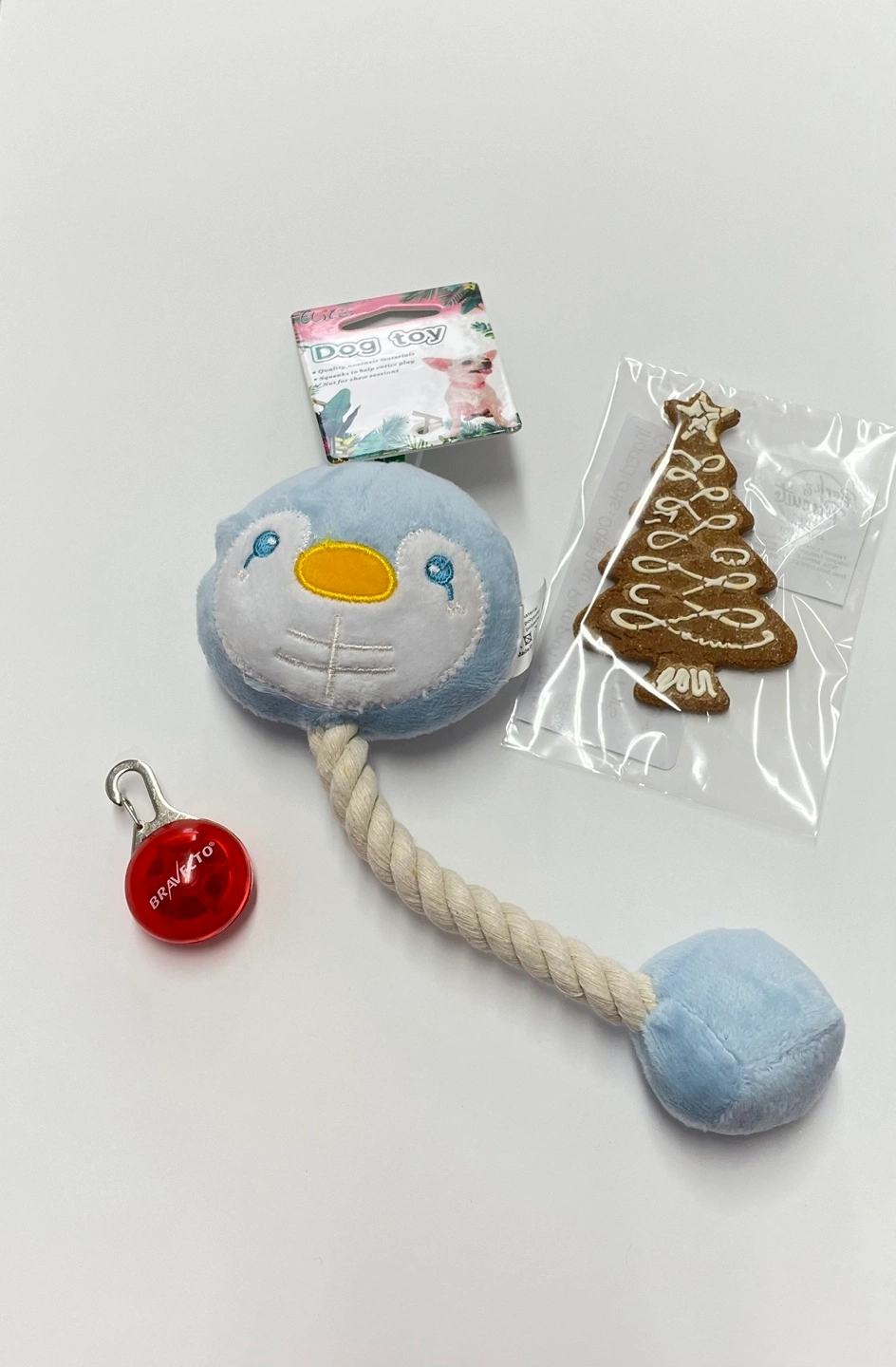 Dog Toy Set with Rope Penguin and Gingerbread Tree Treat