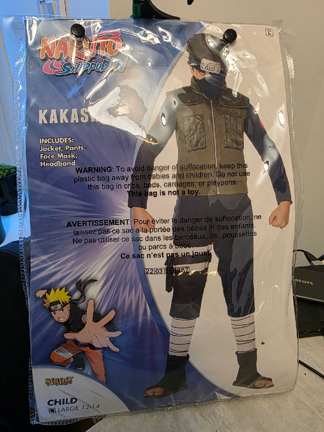 Selling a new Naruto Shippuden Kakashi costume for kids! It's a size large (12-14) and includes everything your little ninja needs: