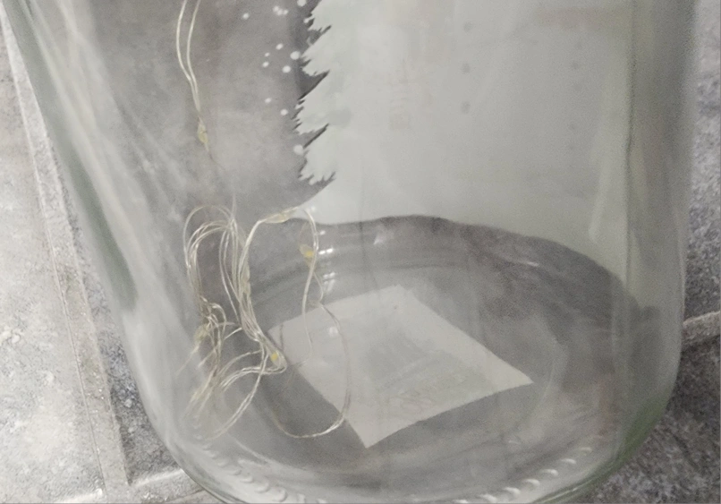 This xmas decoration bottle looks great displayed on a window sill, shelf, counter top, and coffee table centerpiece. It measures approximately10 inches high by 4 inch diameter