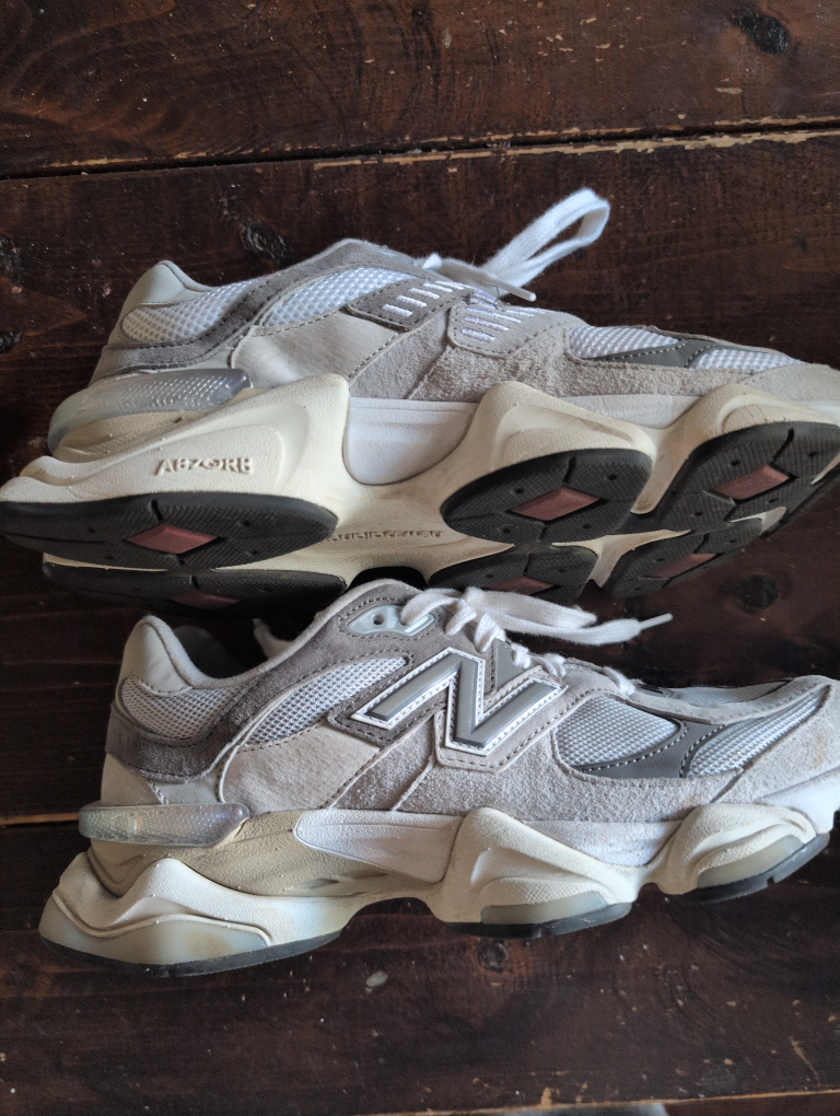 Selling a pair of New Balance 9060 sneakers in grey. They are in great condition and ready for a new home! The shoes feature the ABZORB technology for comfort and support. size 8.5 women. worn once.