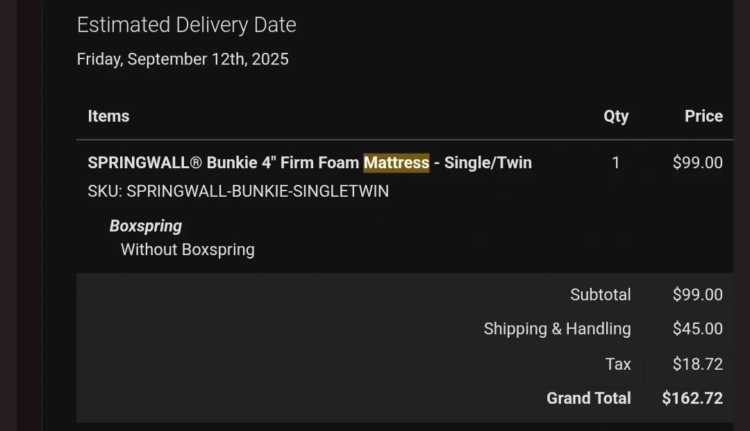 Selling a SPRINGWALL brand firm foam mattress in single/twin size. This bunkie mattress is 4 inches thick. It's a great option for a daybed or trundle.