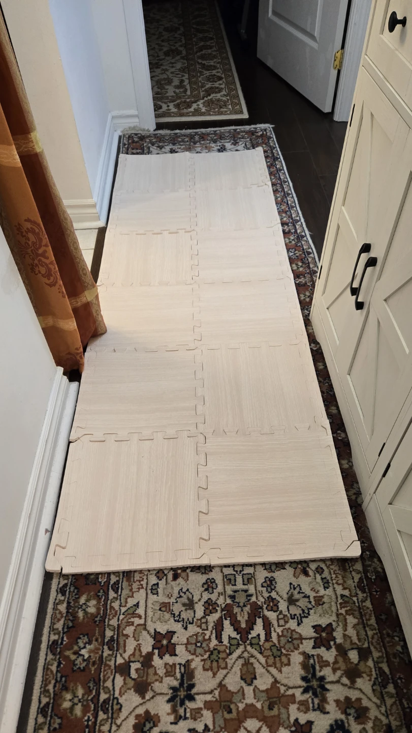 Selling a set of foam play mat tiles! They're perfect for creating a soft and safe play area for kids. These interlocking tiles are easy to assemble and provide cushioning on hard floors. Each tile is 1 ft by 1 ft