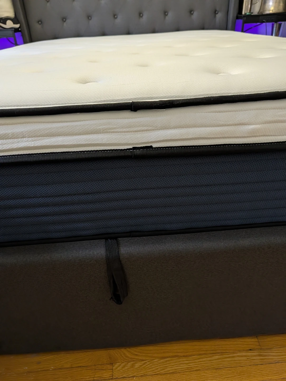 Queen 14.0 inch hybrid mattress with gel memory foam. It features a quilted cover and innerspring coils for support. Great for a comfortable night's sleep! Bought for 400 never used just unboxed and cannot be repacked.