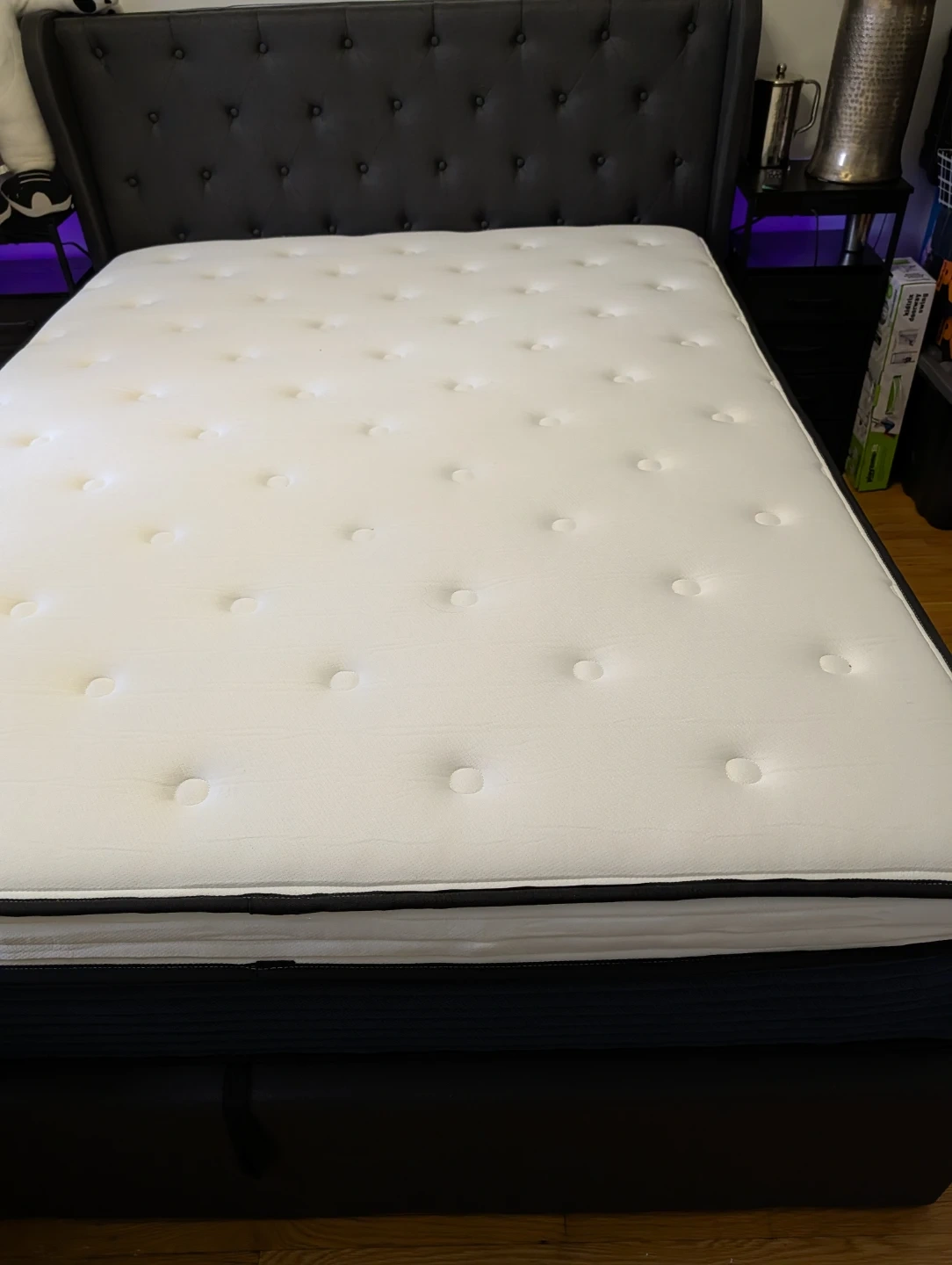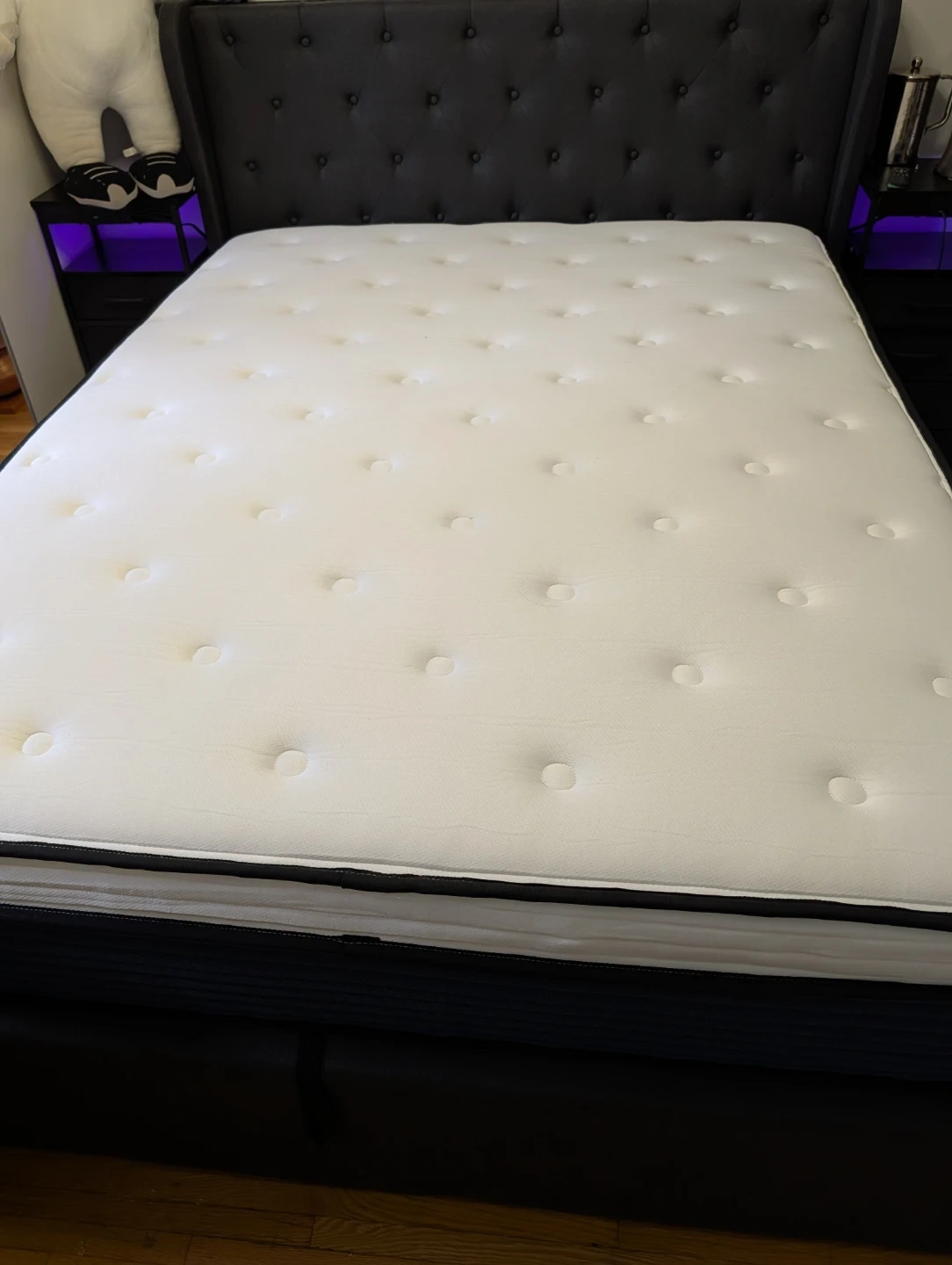 Queen 14.0 inch hybrid mattress with gel memory foam. It features a quilted cover and innerspring coils for support. Great for a comfortable night's sleep! Bought for 400 never used just unboxed and cannot be repacked.