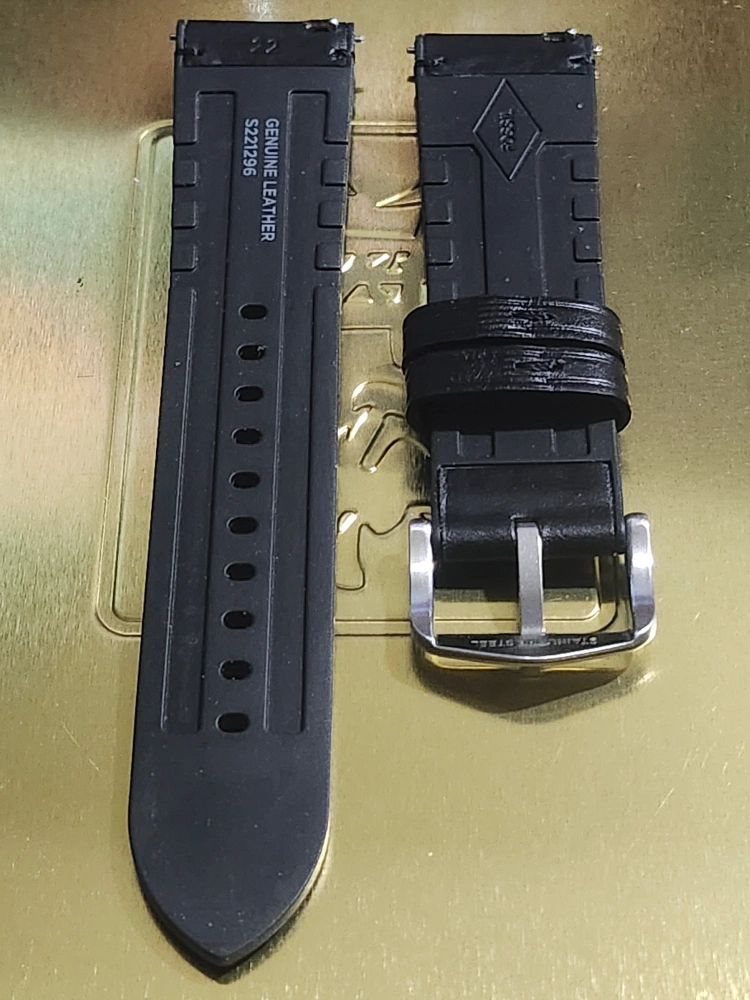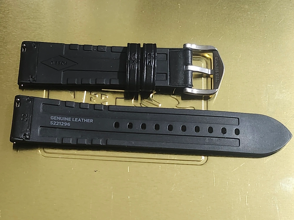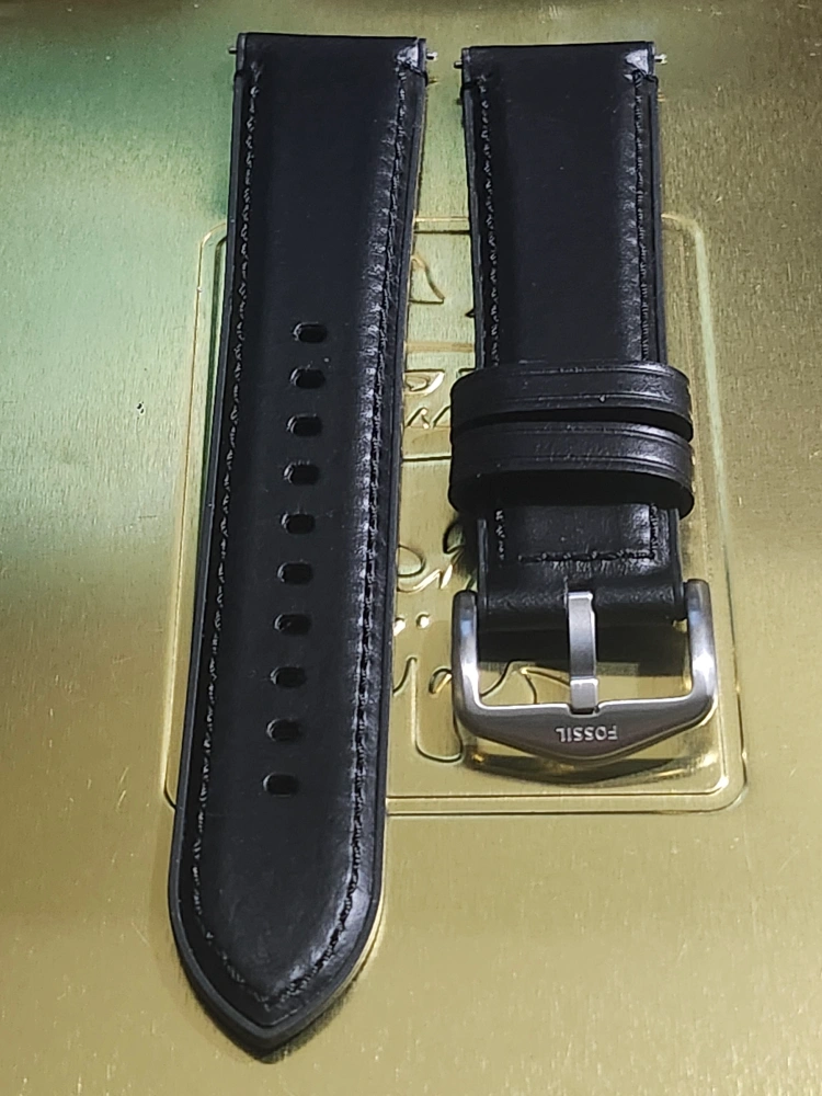 Fossil watch band. Black genuine leather. Stainless steel buckle. Model number S221296. New, never worn.
