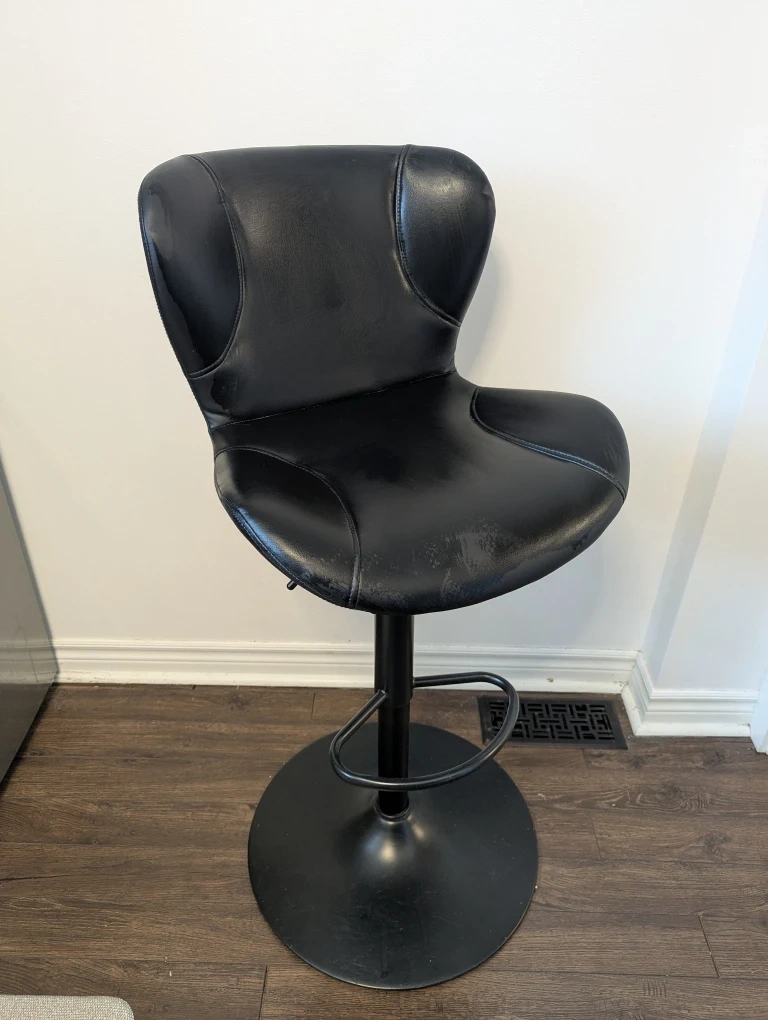 Selling two identical black bar stools. One has some wear and tear, as shown in the photos, but is still completely functional and like new. Perfect for a kitchen island or bar area!