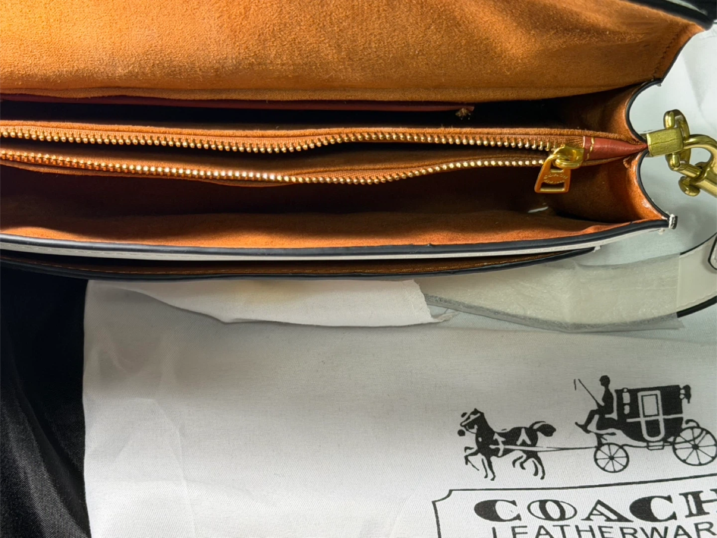Coach Tabby Shoulder Bag in white. It's made of textured leather and features a signature C hardware. Comes with a dust bag.