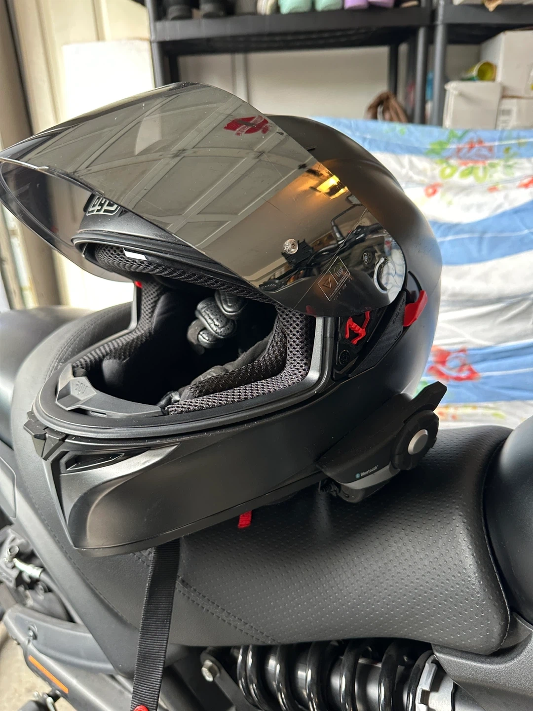 Selling an AGV motorcycle helmet in size MS (57). It has a sleek black design and appears to be in good condition. The helmet is DOT and ECE 2205 certified for safety. Feel free to reach out if you have any questions!