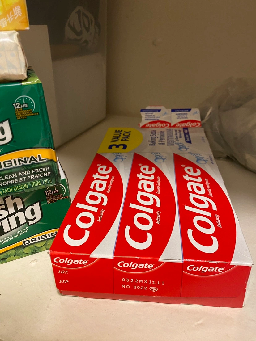 2 tubes of Colgate toothpaste in a value pack. Expired so don’t use on teeth, maybe a different creative use?