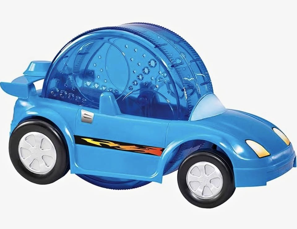 Critter Cruiser is an exciting pet powered exercise car for hamsters and gerbils. Critter Cruiser's adjustable racing wheel allows for the car to work in three different ways! First, when the Comfort Wheel is in the top position, exercising critters spin the Wheel and the Critter Cruiser remains stationary. Interactive fun begins by adjusting the Comfort Wheel into the middle position. In the middle position, you can watch your pet "drive" their Critter Cruiser across any flat surface. By adjusting the Comfort Wheel to the lowest position, the Critter Cruiser will work directly on Kaytee's Hamtrac.