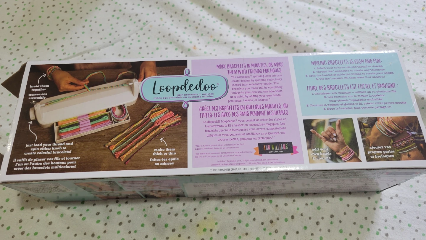 This Loopdedoo spinning loom lets you create unique bracelets by spinning embroidery thread. It's easy to use, just load your thread and spin either knob to create colourful bracelets. Make them thick or thin and add your own beads and charms for extra flair!