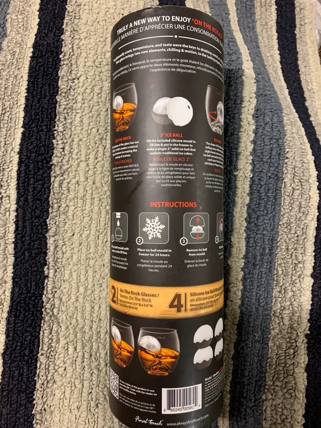 This set includes two "On The Rock" glasses and four silicone ice ball molds. Fill the included silicone mold to put in the freezer for 24 hours to make ice balls. Great for chilling your favourite spirits or beverages!