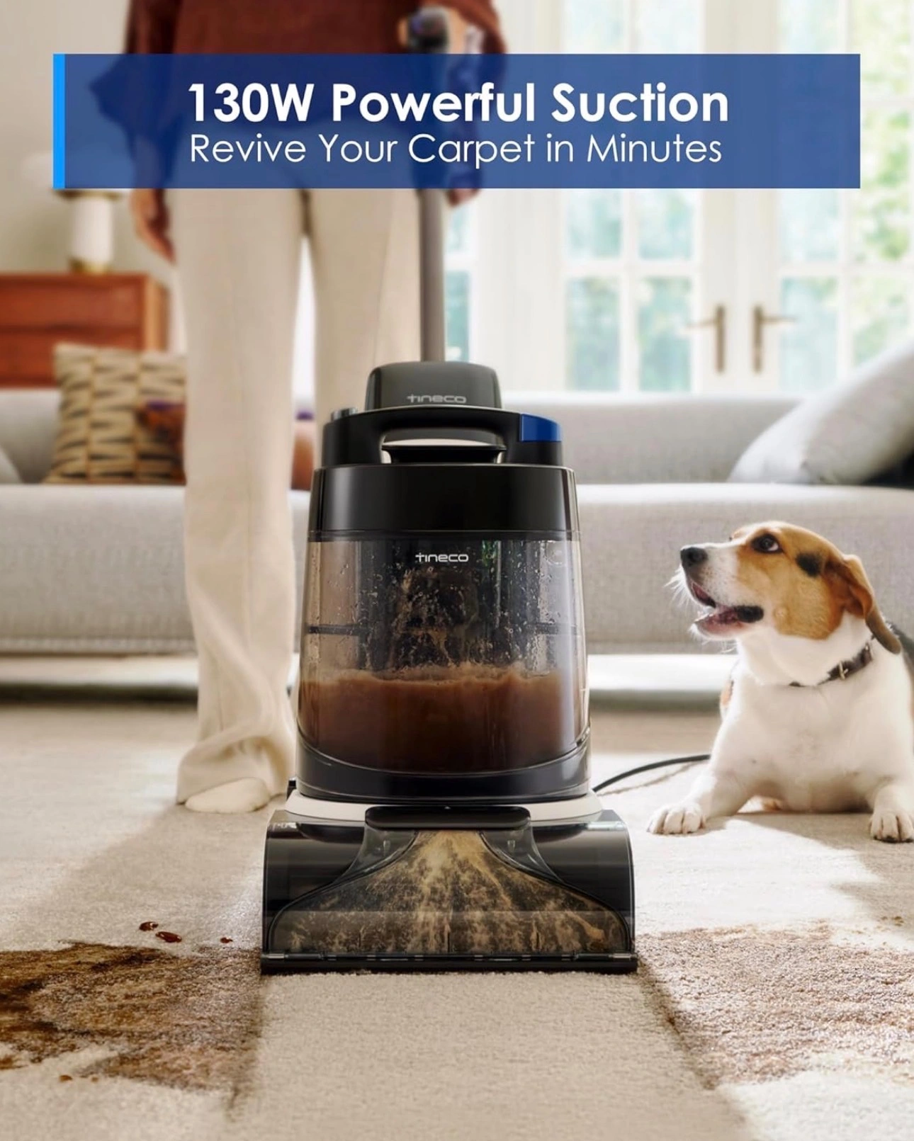 130W Powerful Suction: Powerful suction ensures deep carpet cleaning and effective extraction of water residue, leaving your carpets spotless. Includes a stain-remover tool for tackling hard-to-reach areas with ease.