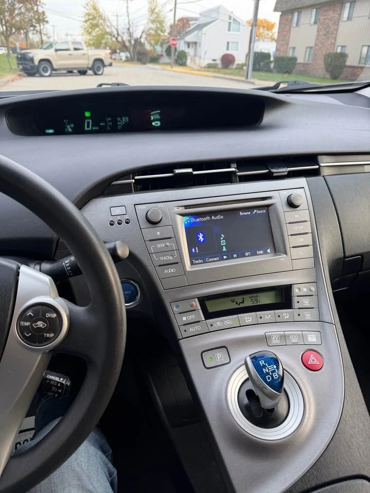 Hybrid(Over 50MPH) Bluetooth, super clean inside and outside, Runs and Drives beautiful. A/C blows Ice cold! Heater is working well, Great gas saver, Push Start, Keyless Entry, Touch screen Display, 4 new Bridgestone Tires, brakes and rotors are almost new, very fuel efficient because that is Hybrid, Engine and transmission Great condition very smooth, all electronics work perfectly, Only 2 OWNERS, it has a lot of service history(67 service record), freshly change oil by Toyota Dealer, very economic car without any problem.