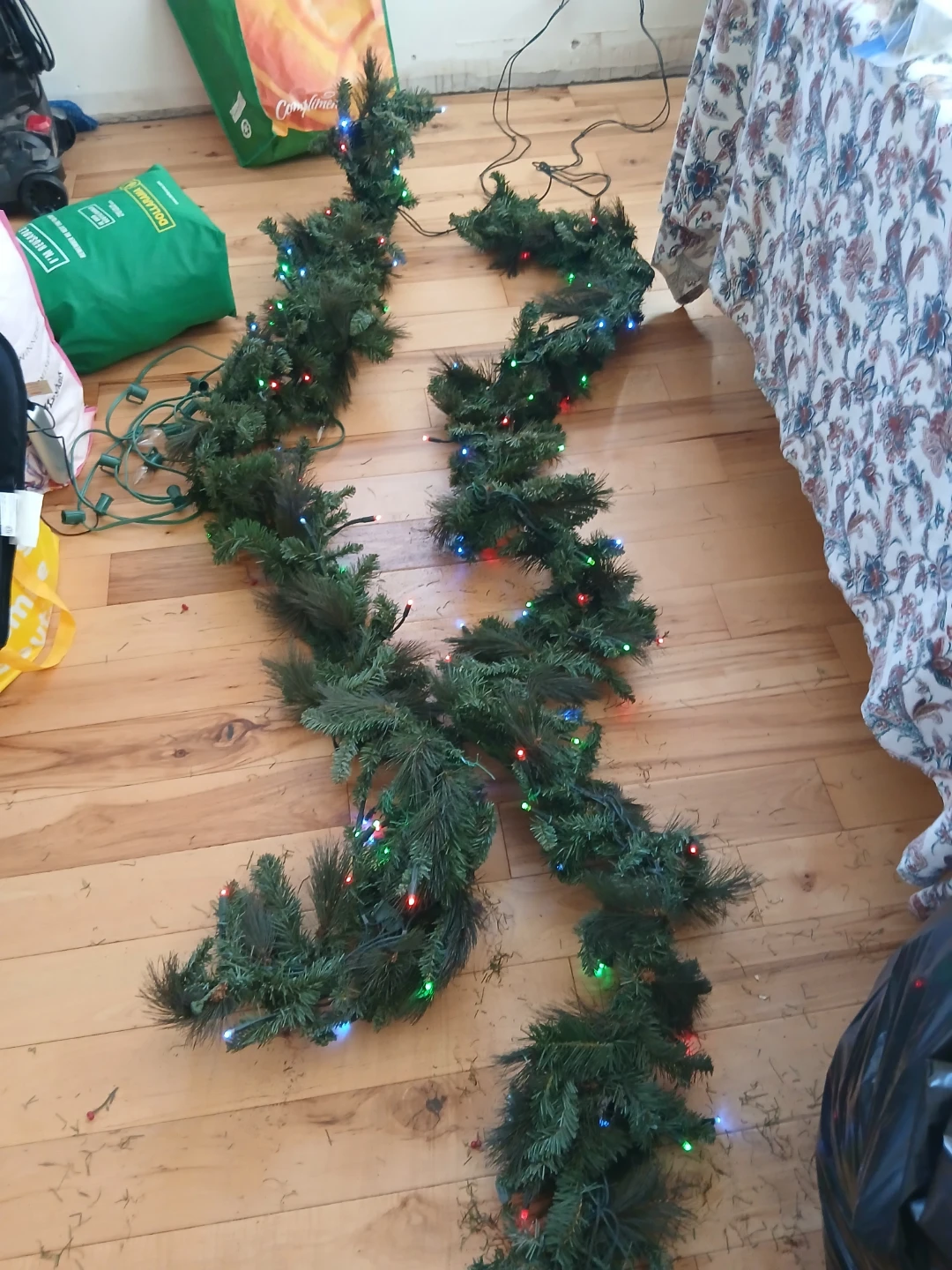Selling a Christmas garland with lights! It's perfect for adding a festive touch to your home this holiday season. The garland is in good condition and ready to brighten up your space