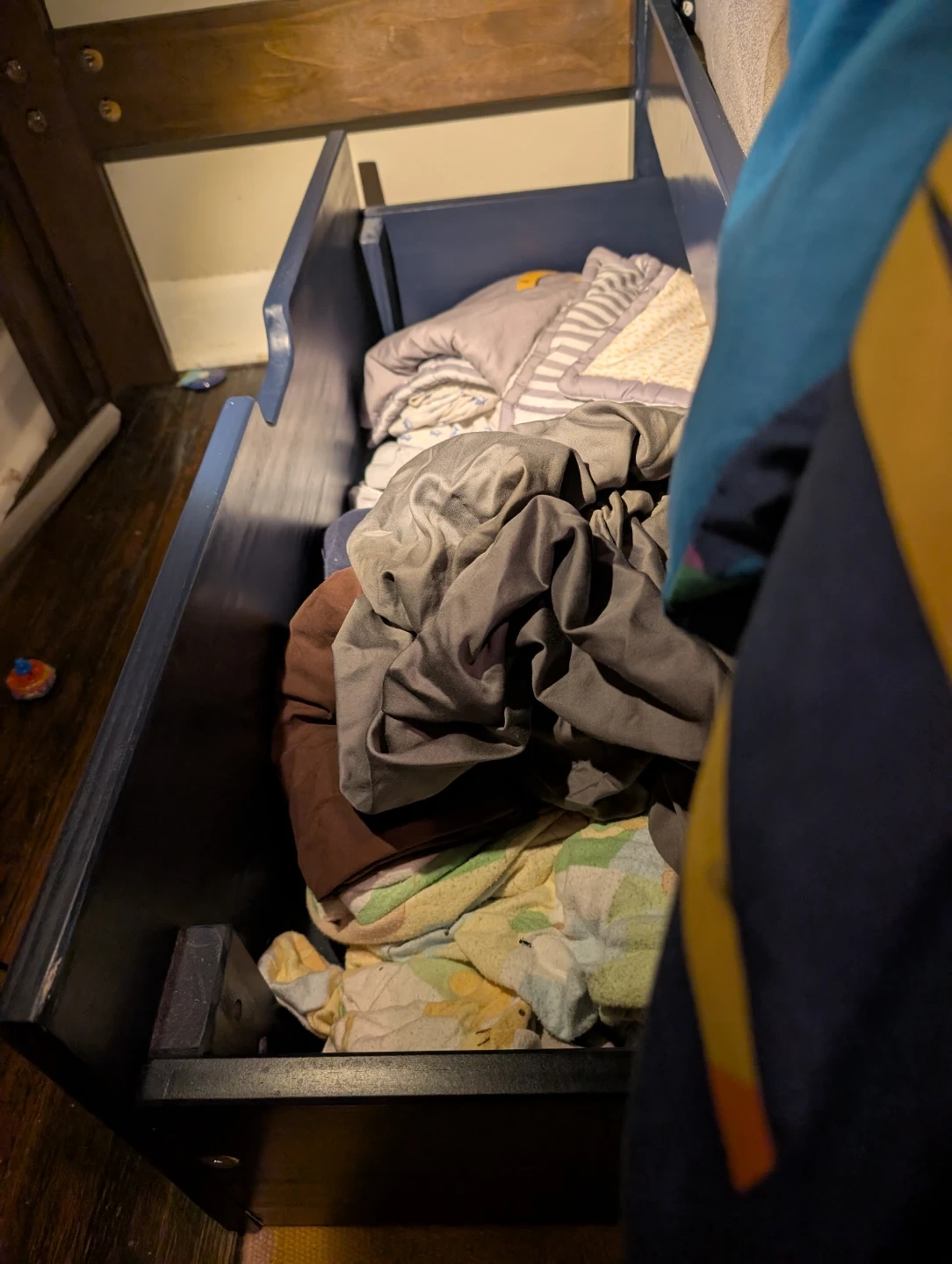 Selling a solid wood Max & Lily twin bed in navy blue, with matching storage drawers that fit under the bed. The bed is in excellent condition, only a couple of years old. Perfect kid bed. It will be disassembled prior to pickup. Cannot deliver - must pick up in Oakwood Village, Toronto.