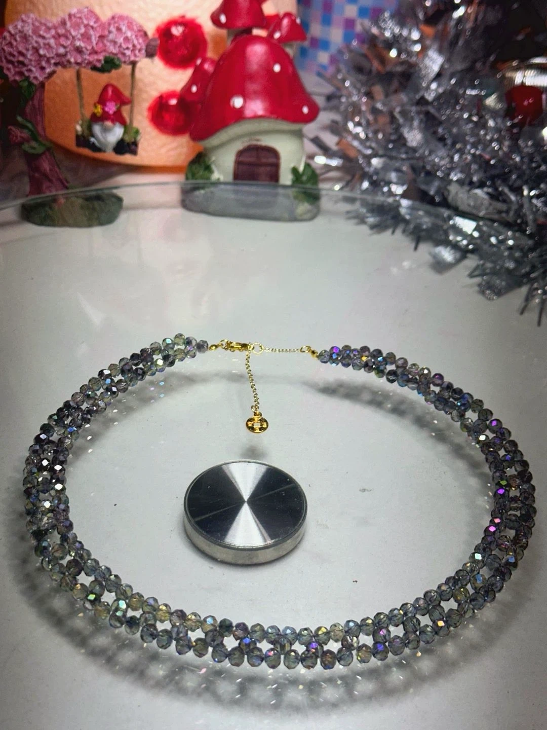 Sparkle and shine with this beautiful Tory Burch crystal pearl necklace! It's in great condition and ready to add a touch of elegance to any outfit. The necklace features a delicate gold-tone chain with the iconic Tory Burch logo charm.