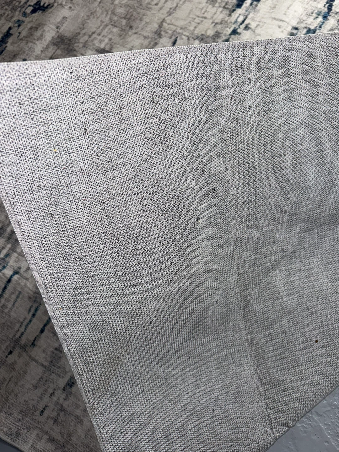 This is a large area rug featuring a modern abstract design in grey, white, and blue tones. It's made from a soft, durable fabric perfect for adding style to any room. Its generous size makes it suitable for living rooms or bedrooms. Machine washable.