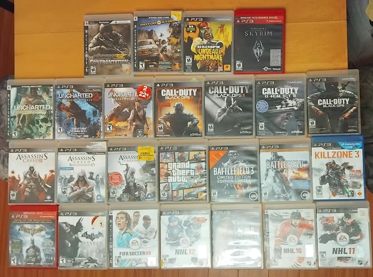 This is a collection of PlayStation 3 video games. It includes popular titles like Call of Duty, Uncharted, and Assassin's Creed. Games are for the PS3 console.