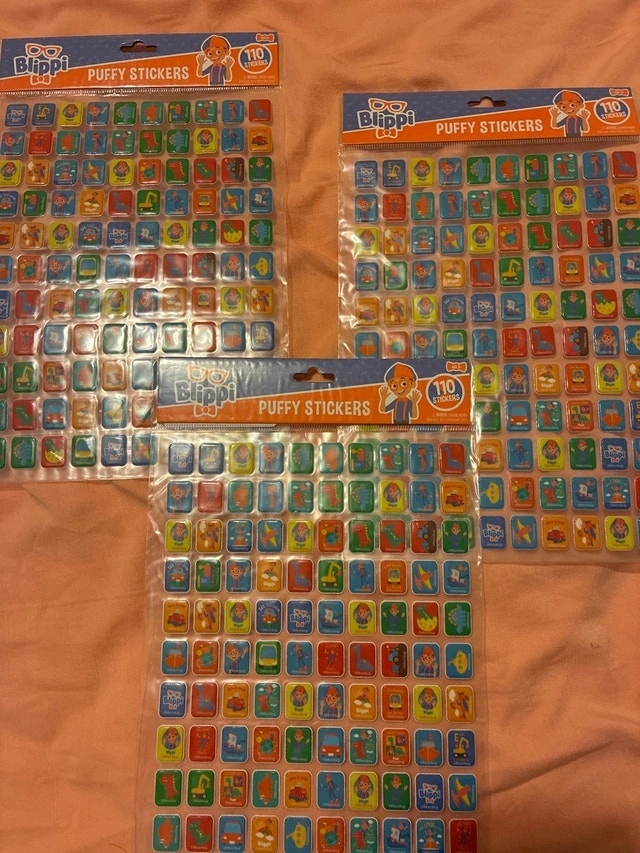 I'm selling three packages of Blippi Puffy Stickers, each containing 110 stickers! These stickers are brand new and ready to bring some Blippi fun. Perfect for crafts, decorating, or just collecting. $4 each or all 3 for $10. If the ad's still up, yep, they're still available!