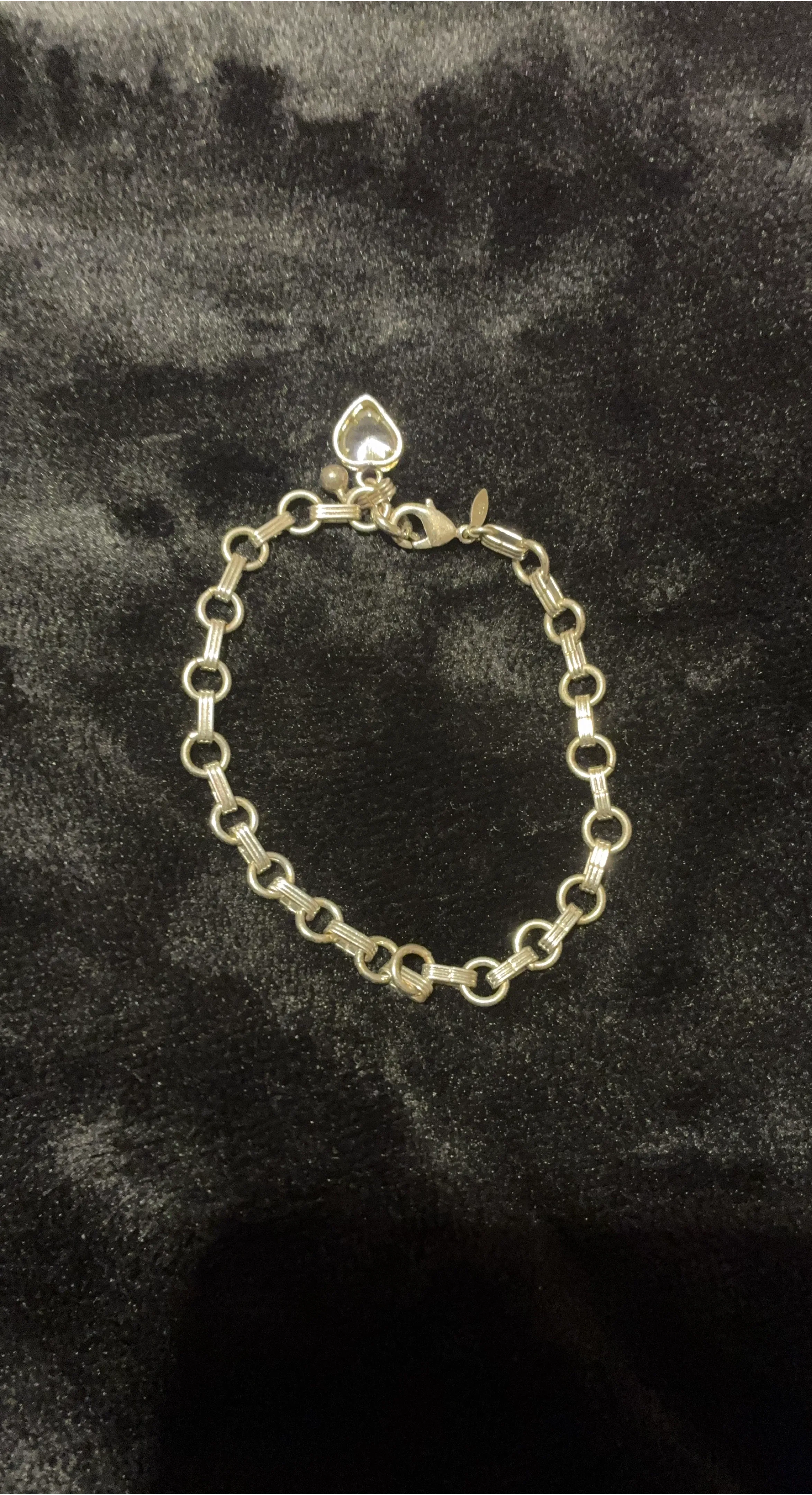 Silver Tone Charm Bracelet with Heart Pendant