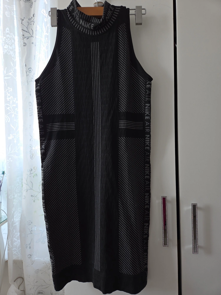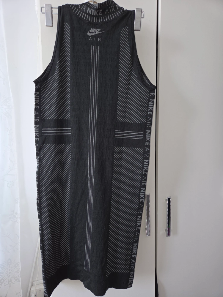 Selling a Nike Air dress in black. It has a unique design with the Nike Air logo featured throughout the dress. It's perfect for casual wear or a sporty look!