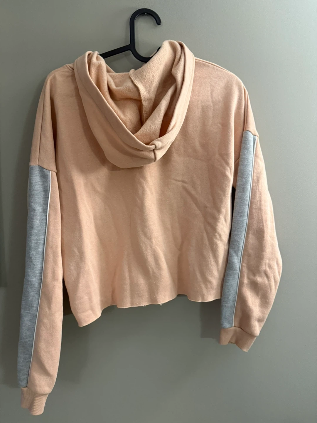 Cozy Texas Tigers Austin hoodie in a size small! It's a light peach colour with grey stripes on the sleeves. Perfect for showing off your school spirit or just staying comfy on a chilly day