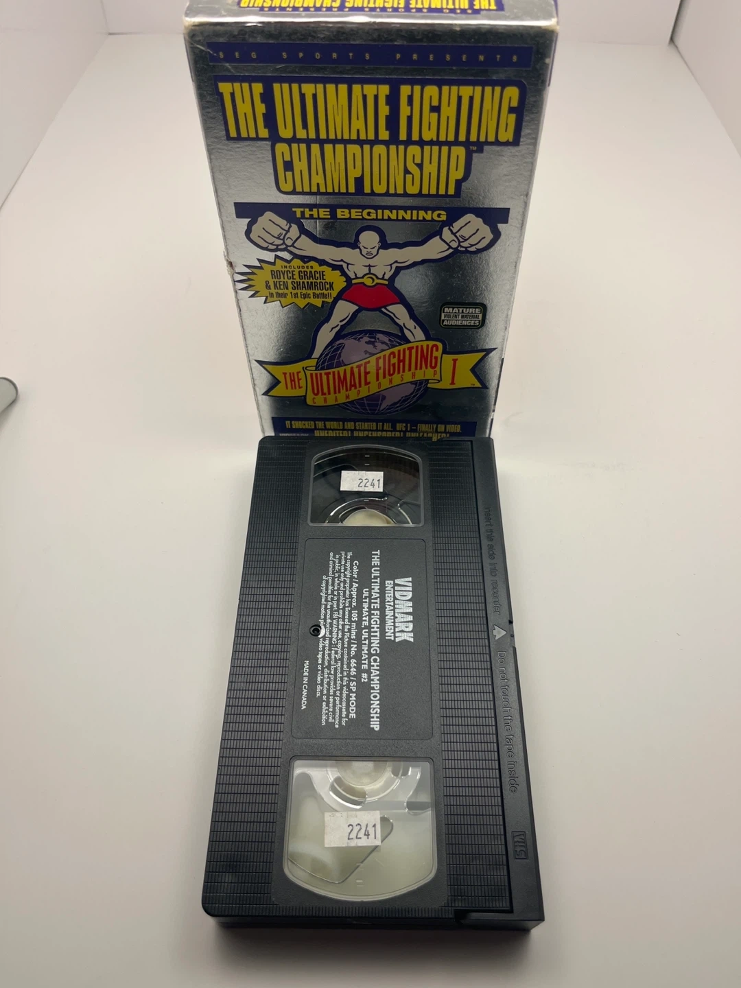 This VHS tape features the inaugural Ultimate Fighting Championship event. It includes fights with Royce Gracie and Ken Shamrock. The tape is approximately 89 minutes long and rated for mature audiences.