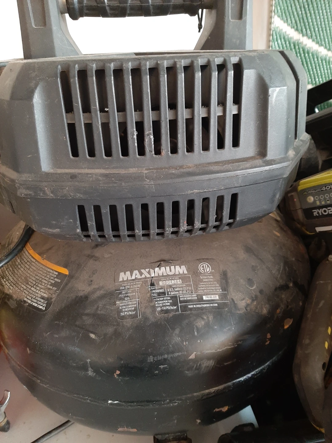 Buy & SellMaximum 6 Gallon Air CompressorMaximum 6 Gallon Air Compressor$50This Maximum 6-gallon air compressor has a 120-150 PSI range. It operates at 50% duty cycle. It's made in China.ConditionGoodWHERE TO MEETCheck LocationView MapSELLERralphCapilano Mall201 review0 chats·0 favorites·6 viewsSEND CHAT TO SELLERHi ralph! I’m interested in your listing.Hi ralph! I’m interested in your listing.Get the Karrot app to chatSign In to chat